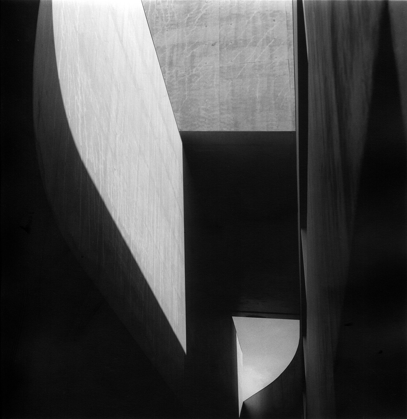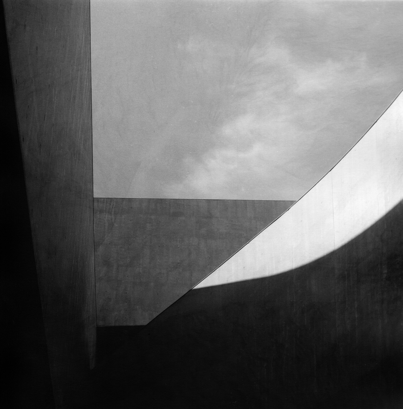 For his first solo exhibition, Liam Leslie’s sensitive eye presents a building that houses art, as art rather than architecture. concrete becomes abstract, earthly becomes ethereal, and all sense of scale disappears; these photographs bring to mind the radical compositions of the 21st century architect Hadid’s hero from the world of 20th century art, Kazimir Malevich
