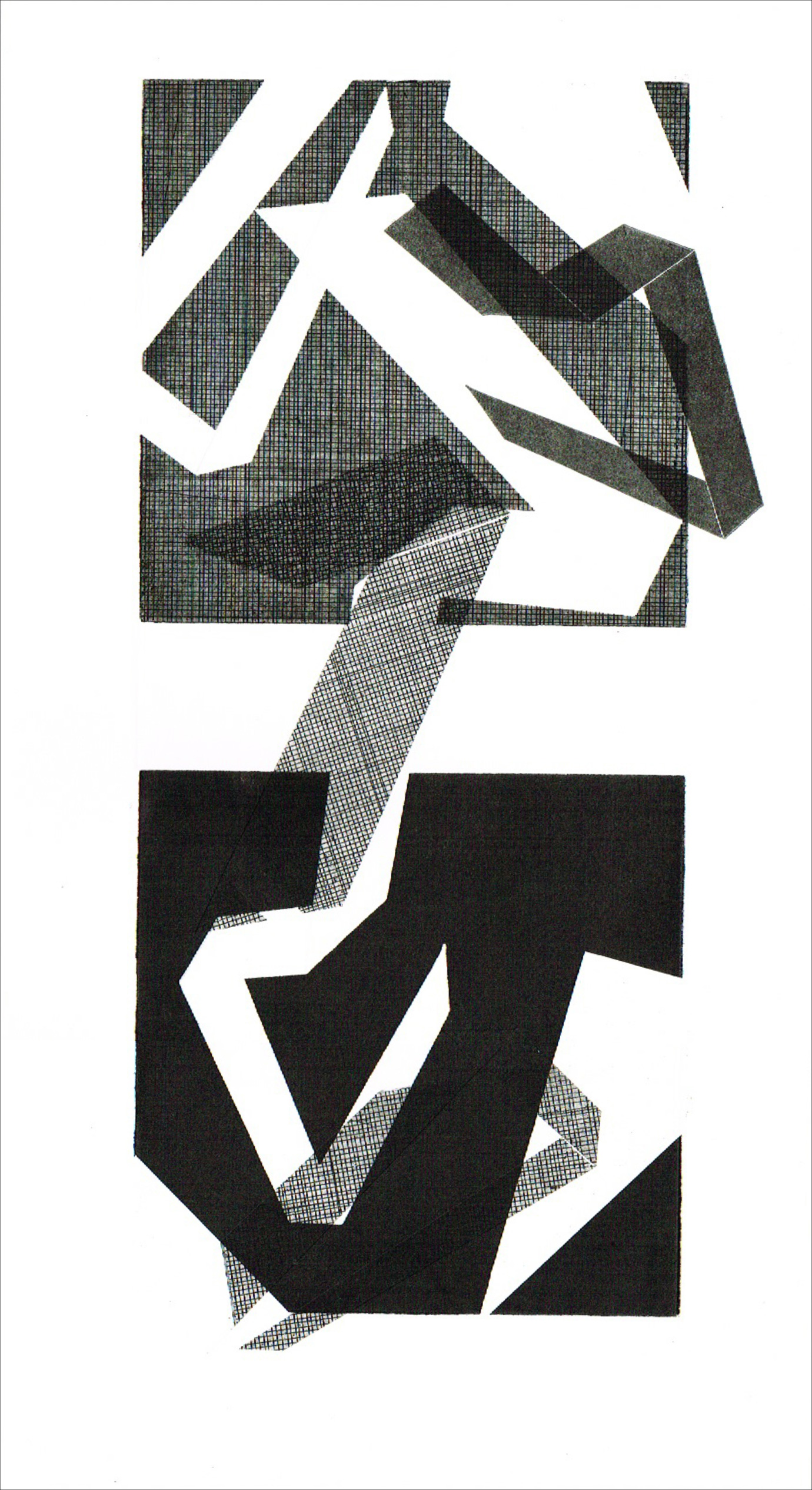 D) Printers' is replete with Gestalt themes: paper and card are the ground, on to which each artist has drawn, etched, photographed, cut and manipulated lines and images to create the figure, and vice-versa. An additional level of perceptual complexity is added, removed or subverted through the transposition of two dimensions to three, and back to two. In so doing, layers are built, spaces are transmogrified, and boundaries are stretched or rendered redundant. Ambiguous spaces in the images engender various senses, by turns of warmth, stasis, austerity or isolation. Monoliths in concrete and stone undergo radical changes via both analogue and digital, becoming unrecognisable through alterations in light, shade and colour