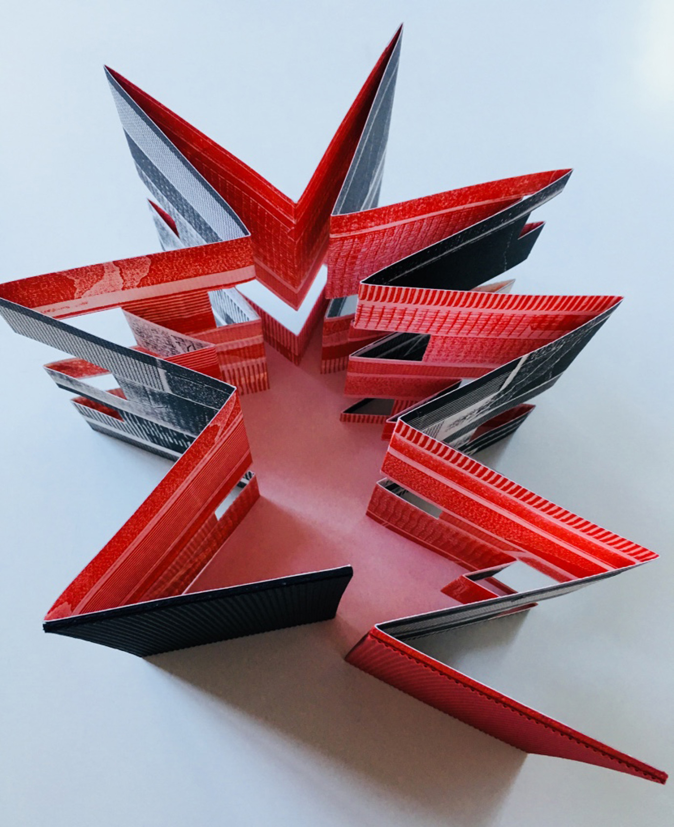 Lucy Annan: Ziggurat (2016), Relief Print on Folded B&B, Variable Dimensions, Edition of 1