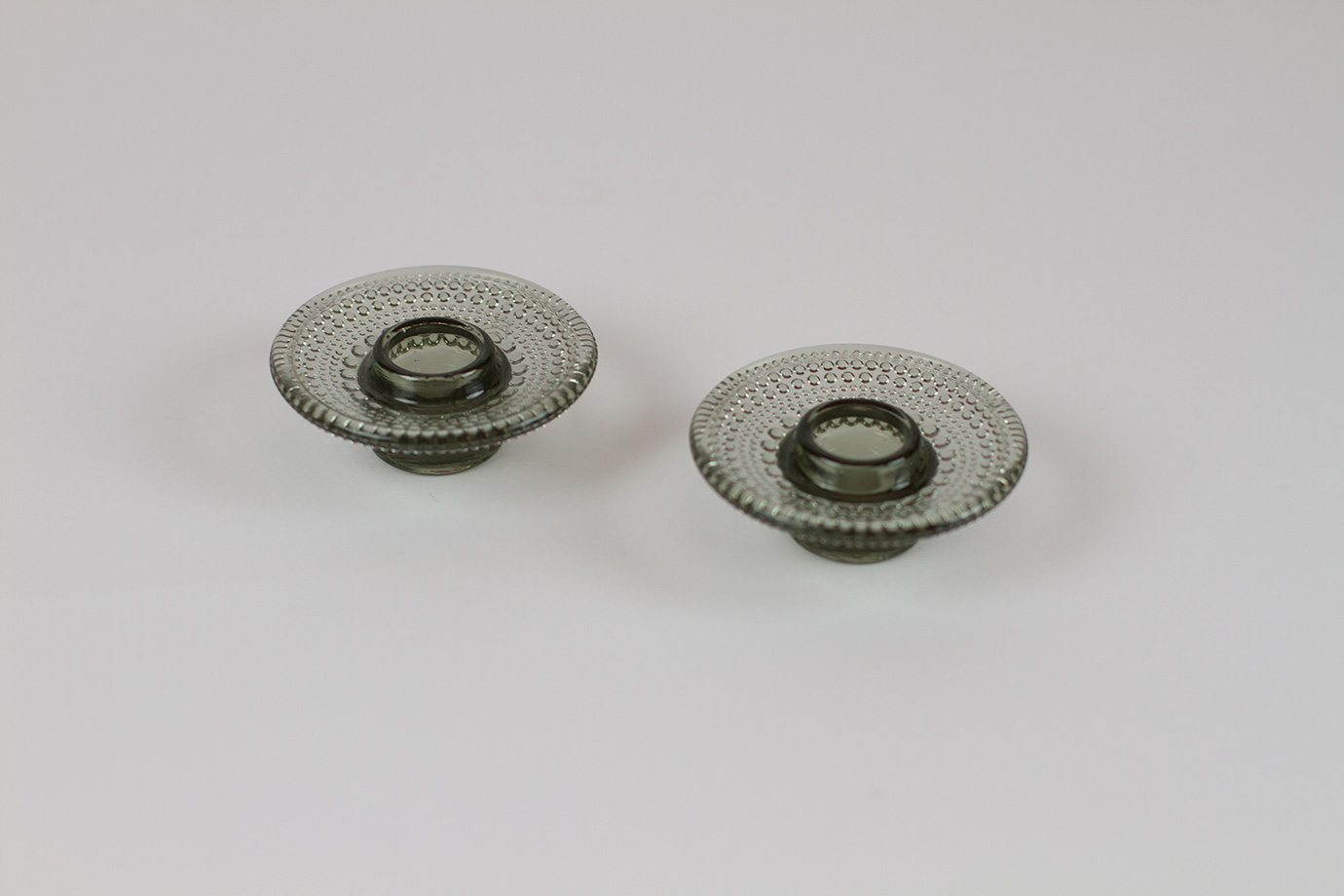 Oiva Toikka (Designer), Kastehelmi Candleholders (2no.) (1964), Pressed Glass for Nuutajärvi Notsjo / Produced under Licence by Cascade, 2.5cm x 7.5cm dia., No Edition