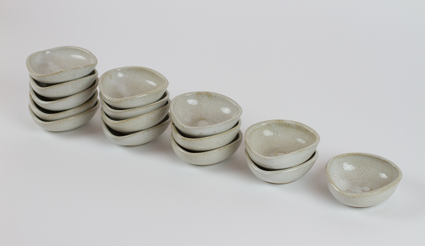 Brian Southwell, Reuleaux Triangular Finger Bowls (15no.) (1960s), Glazed Ceramic, Variable Dimensions (approx. 3cm x approx. 9cm dia.), Unique Set of 15