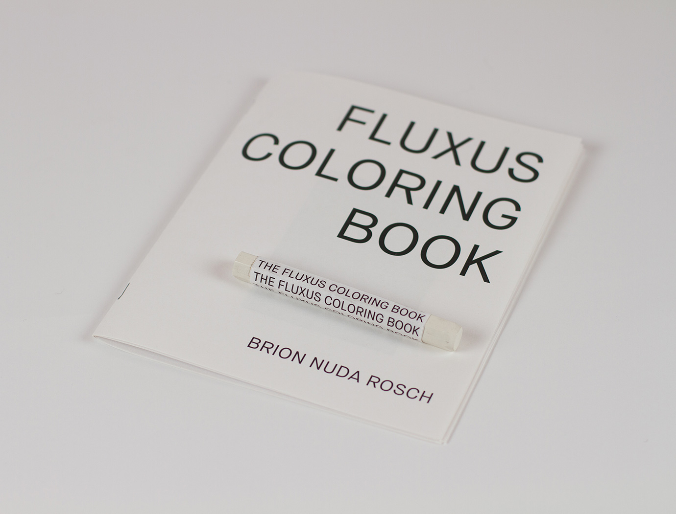 Brion Nuda Rosch, Fluxus Coloring Book (2nd Edition) (2018), 12-Page ‘Zine, Digitally Printed on Card Stock and Staple-Bound, with White Crayon and Label, 22cm x 18cm, No Edition (from a Vending Machine at Minnesota Street Projects)