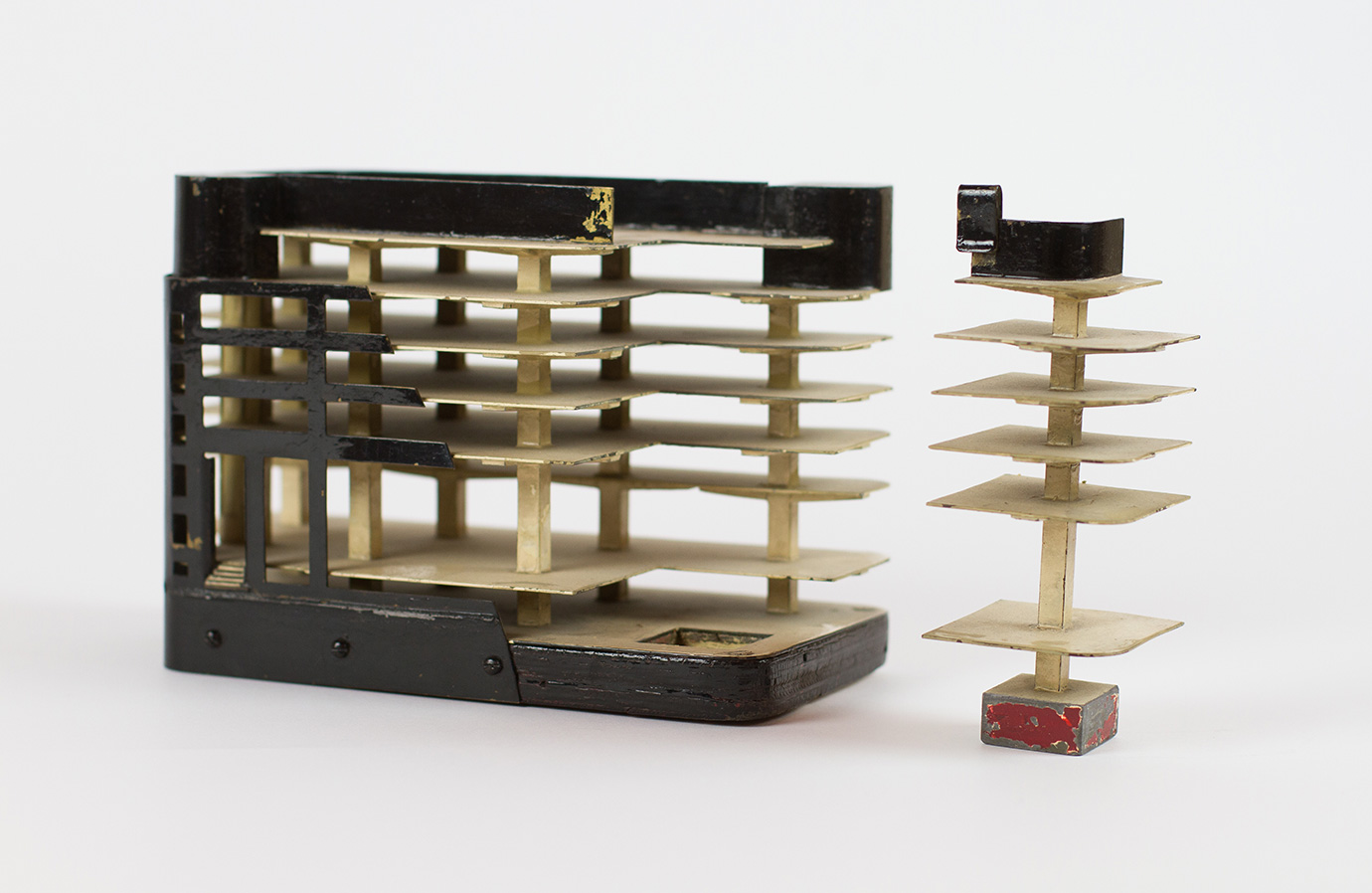 Sir Owen Williams, Maquette of Daily Express Building, Manchester (c.1936), Painted Steel on Timber Base with Detachable Corner, 12.5cm x 19.5cm x 10cm, Unique