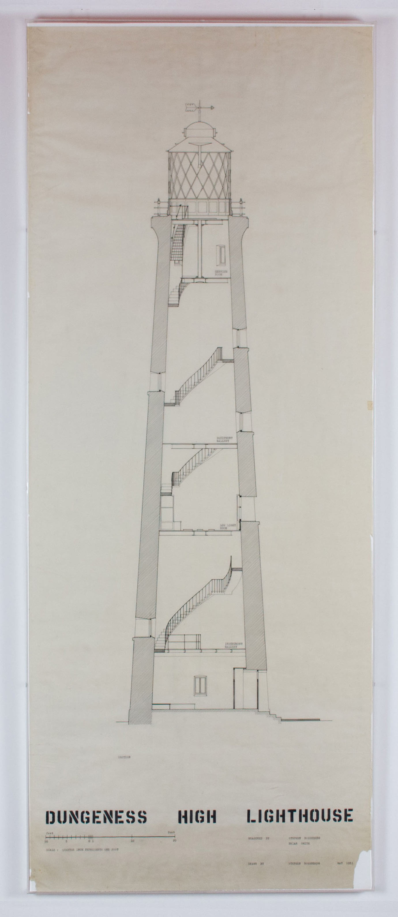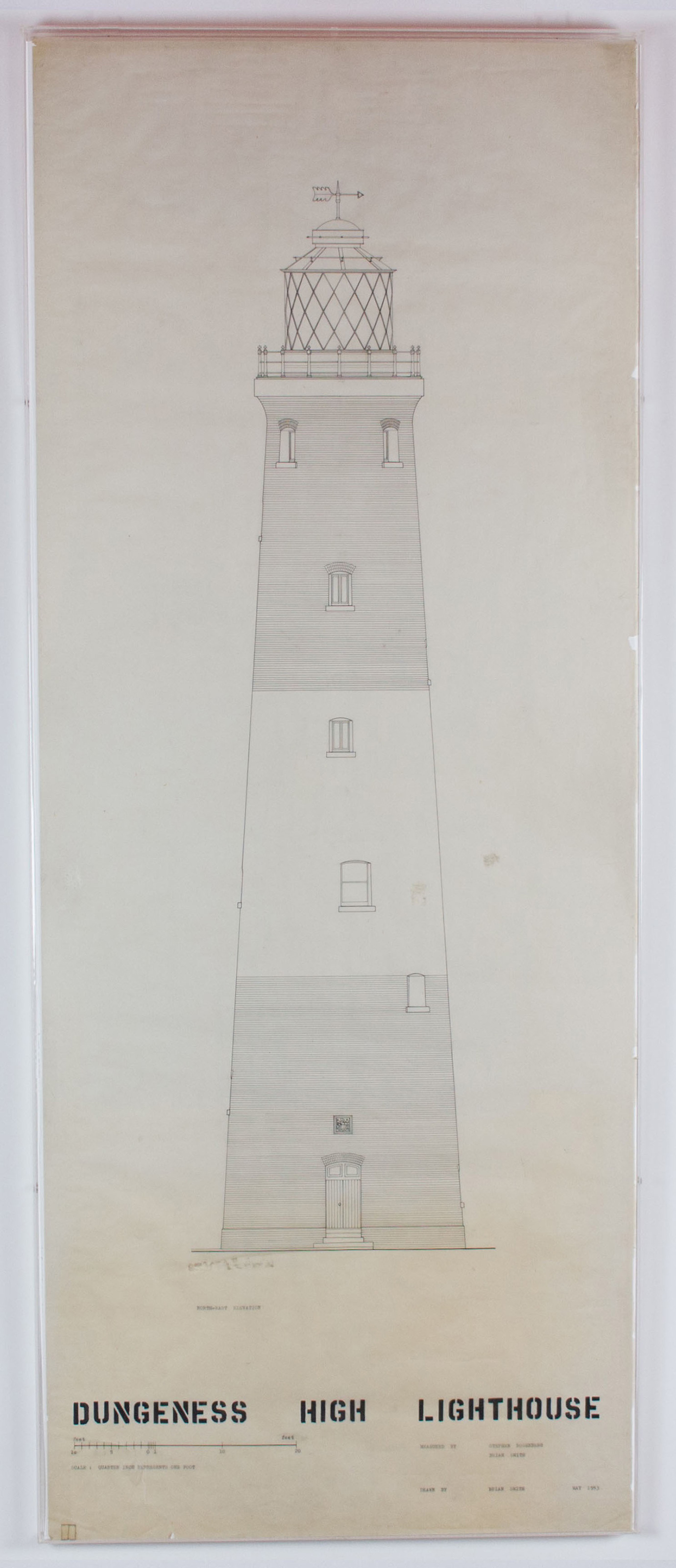 Rosenberg & Smith (Drawn by Brian Smith), Dungeness High Lighthouse: North-East Elevation (May 1953), Pen and Typewritten Ink on Tracing Paper, 126cm x 50cm, Unique (4 of a series of 6)