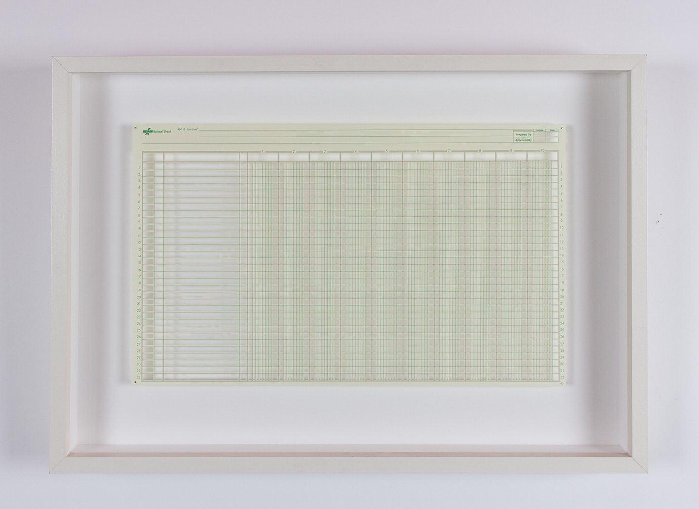 Jill Sylvia, Untitled (Balance Sheet Horizontal Green) (2007), Hand-Cut Ledger Paper, 21.5cm x 35.5cm, Unique