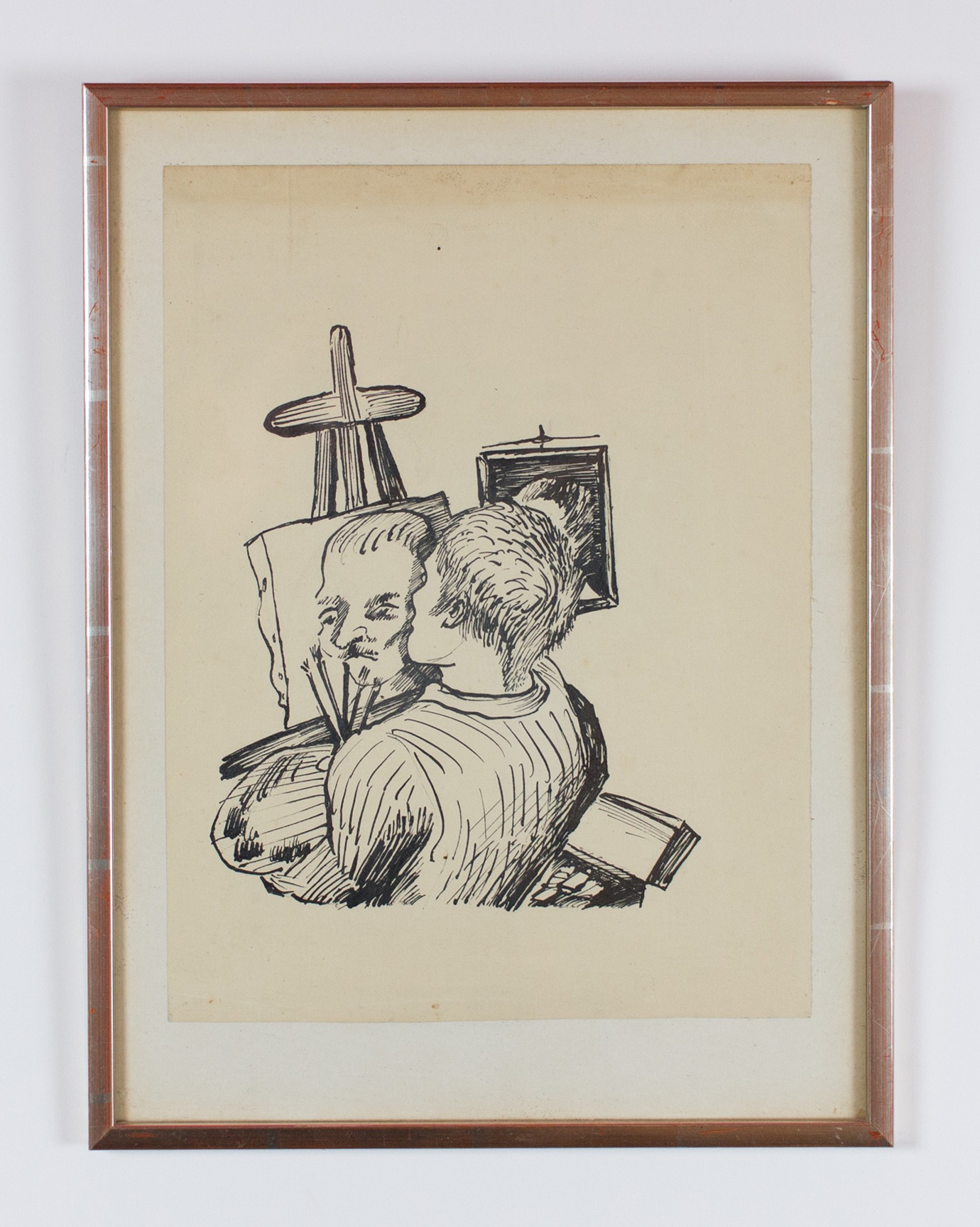 Ludwig Meidner, (3) Self-Portrait(s) with Easel (1930s), Ink on Cartridge Pad Paper (unsigned), 33cm x 25cm, Unique