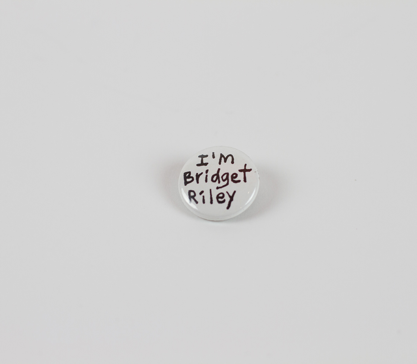 Noah Lyon, I’m Bridget Riley (2017), Printed Paper on Metal Badge with Pin, Plastic-Coated, 0.5cm x 2.5cm dia., No Edition