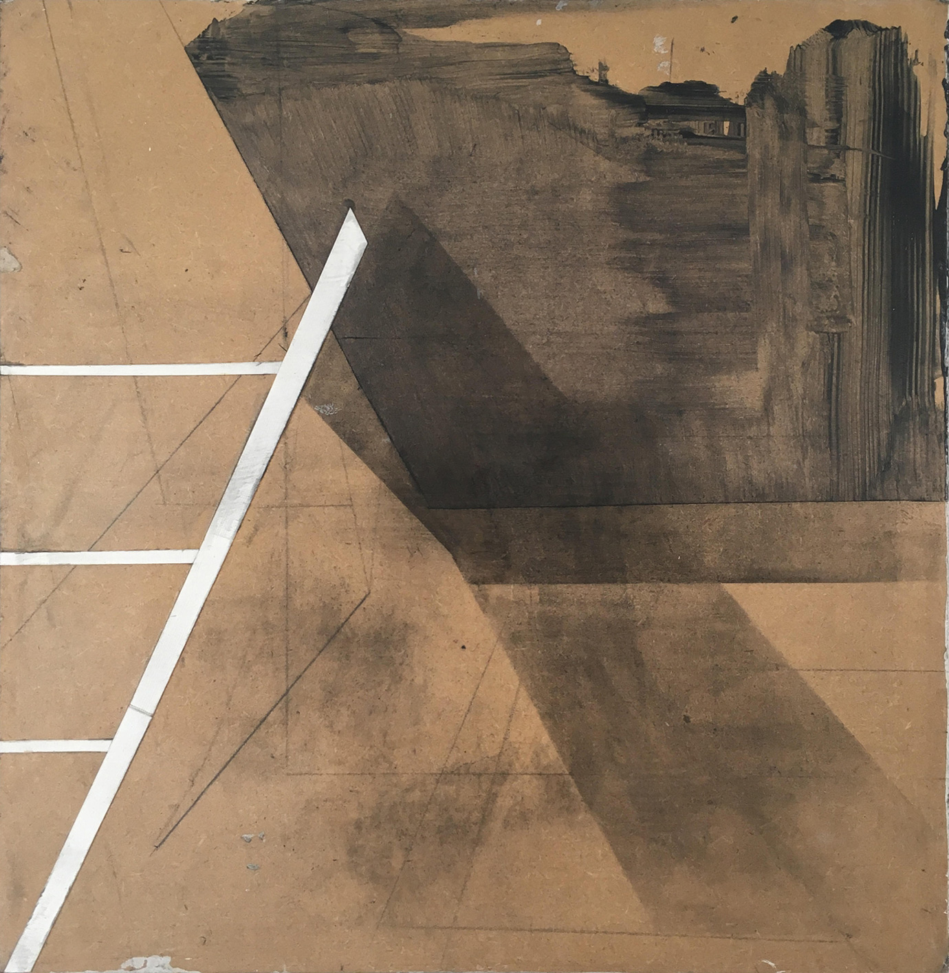 Gail Seres-Woolfson, Urban Tracks (2017), Mixed Media on Board (signed verso by the artist), 41.5cm x 40cm, Unique (£925) (Commissions accepted)