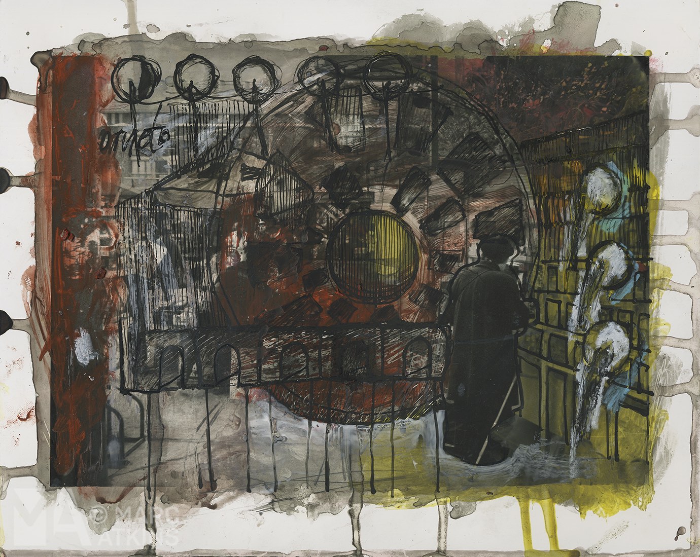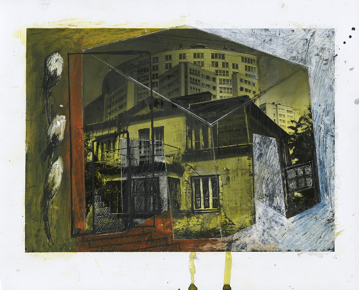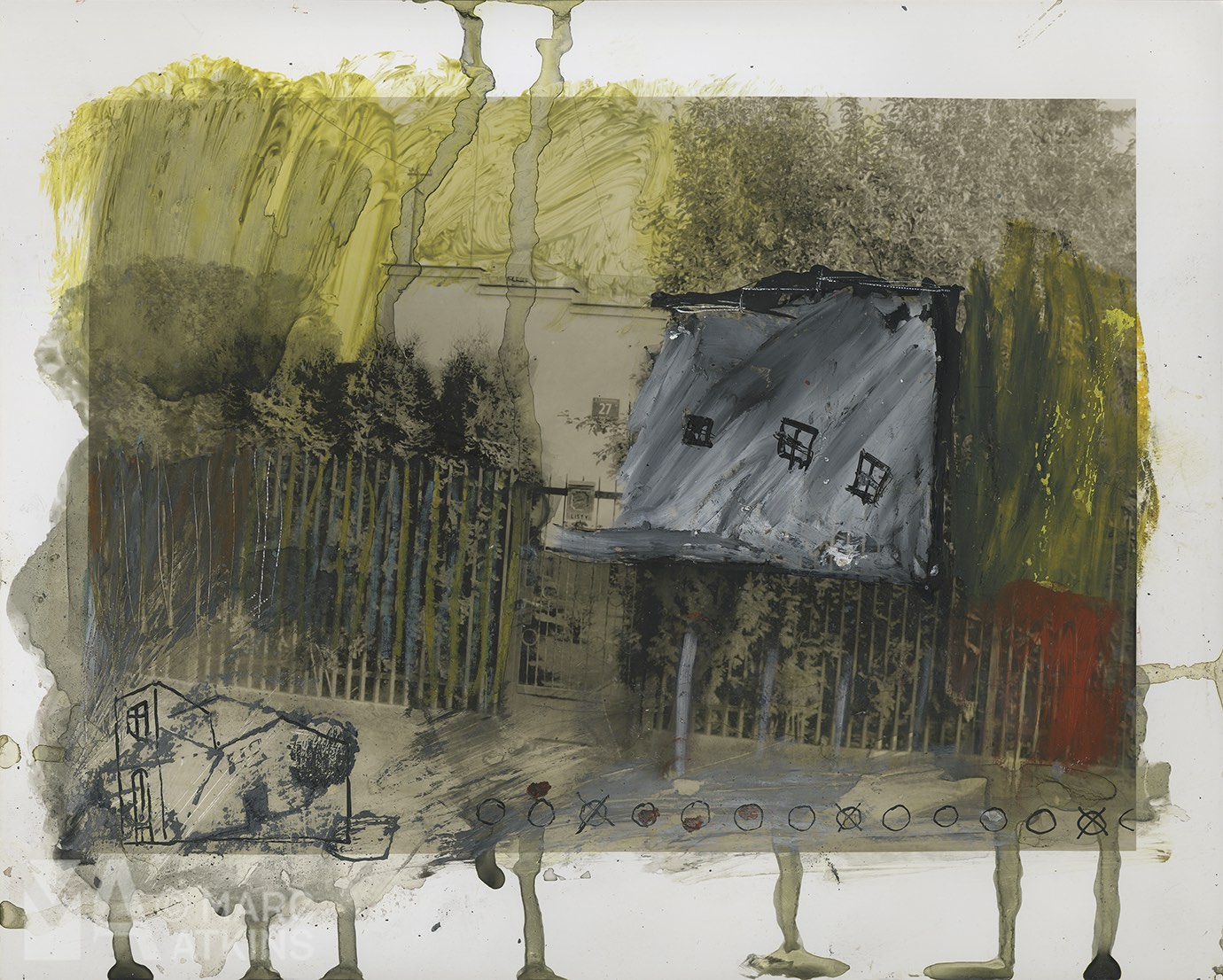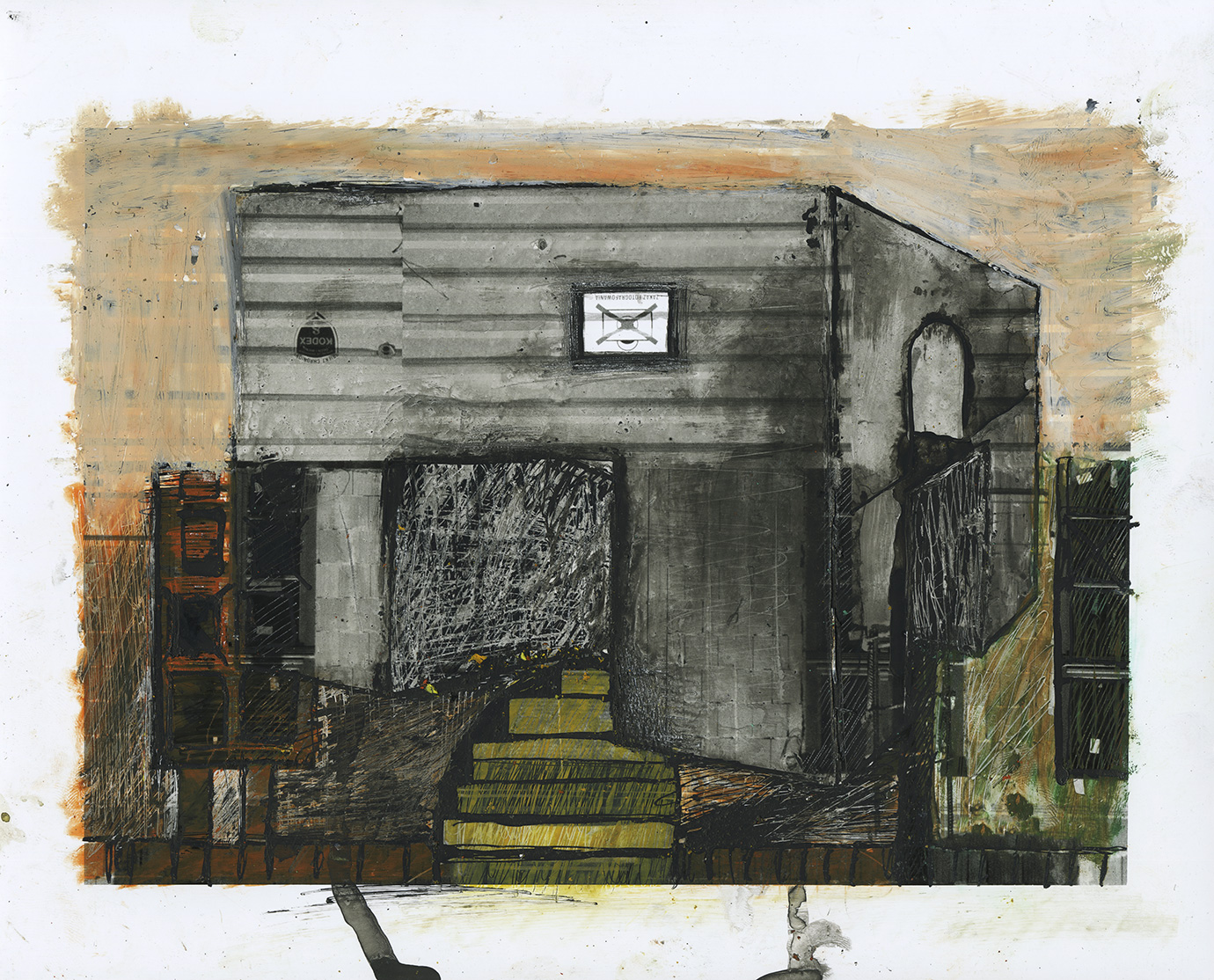 photo-drawings the senses are calmed and disturbed, drawing us in, inducing us to inhabit their erratic temporality and unquiet expanse. Here is the divide between indoors and out, within and without; the works take us to the safety of home, its shelter, comfort and privacy, but also disturbance and unease. Further, they venture to the outside world, with its multifarious imposition of structures of the unfamiliar, washes of sensory confusions, and a translucent system of disquietude