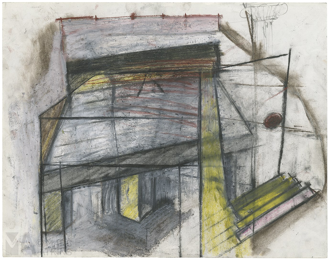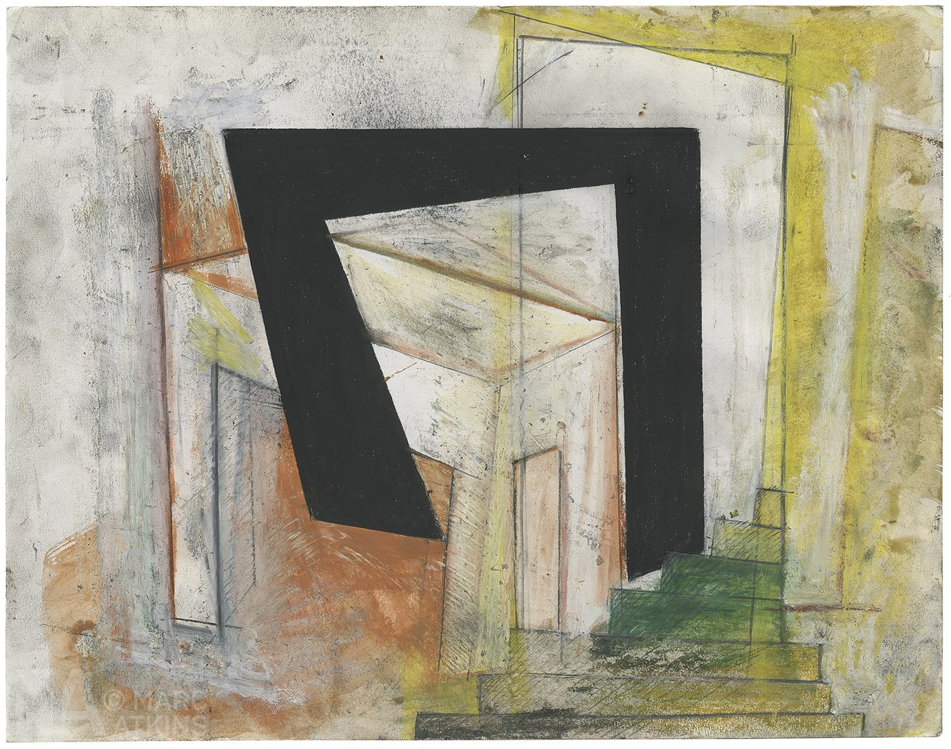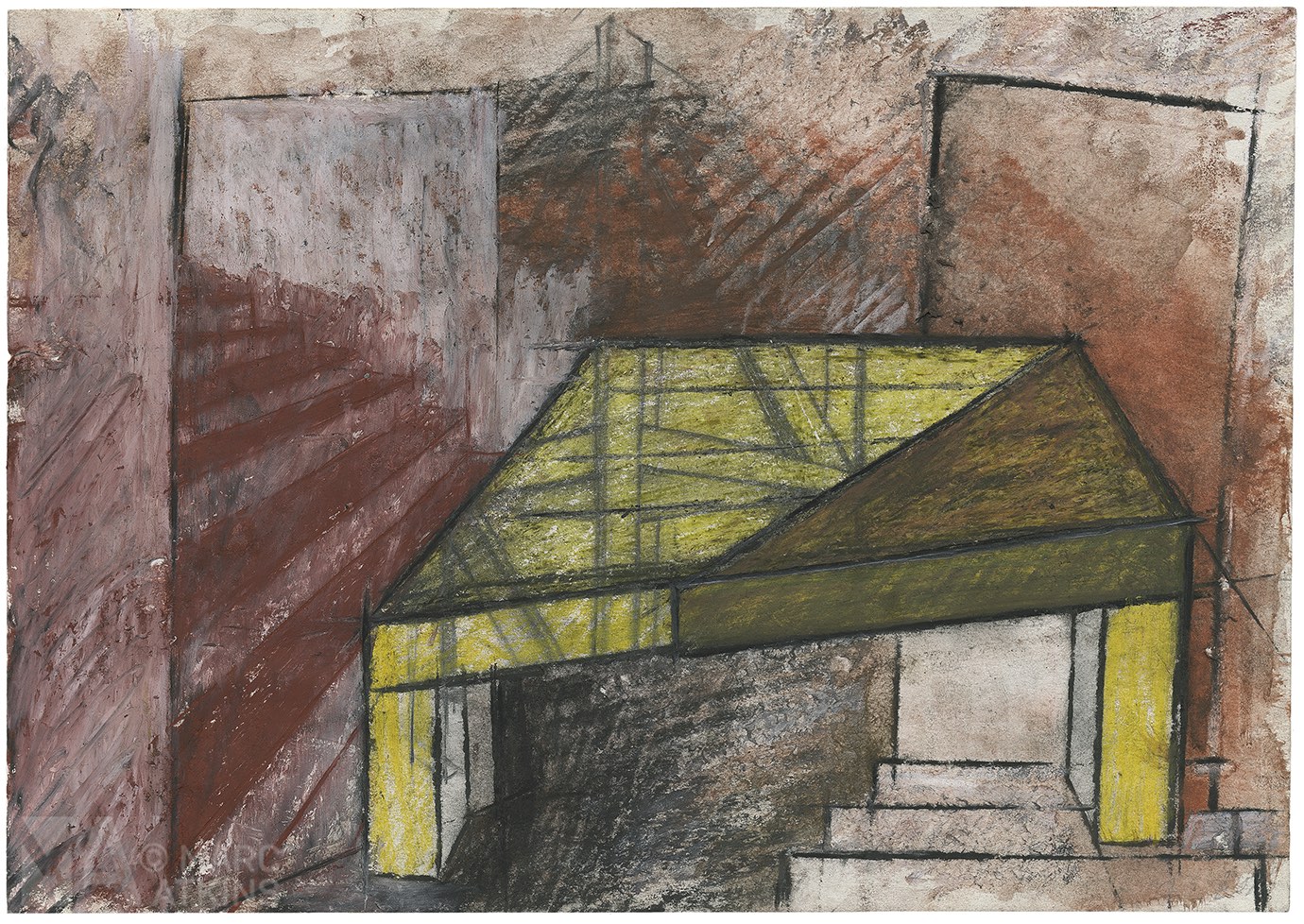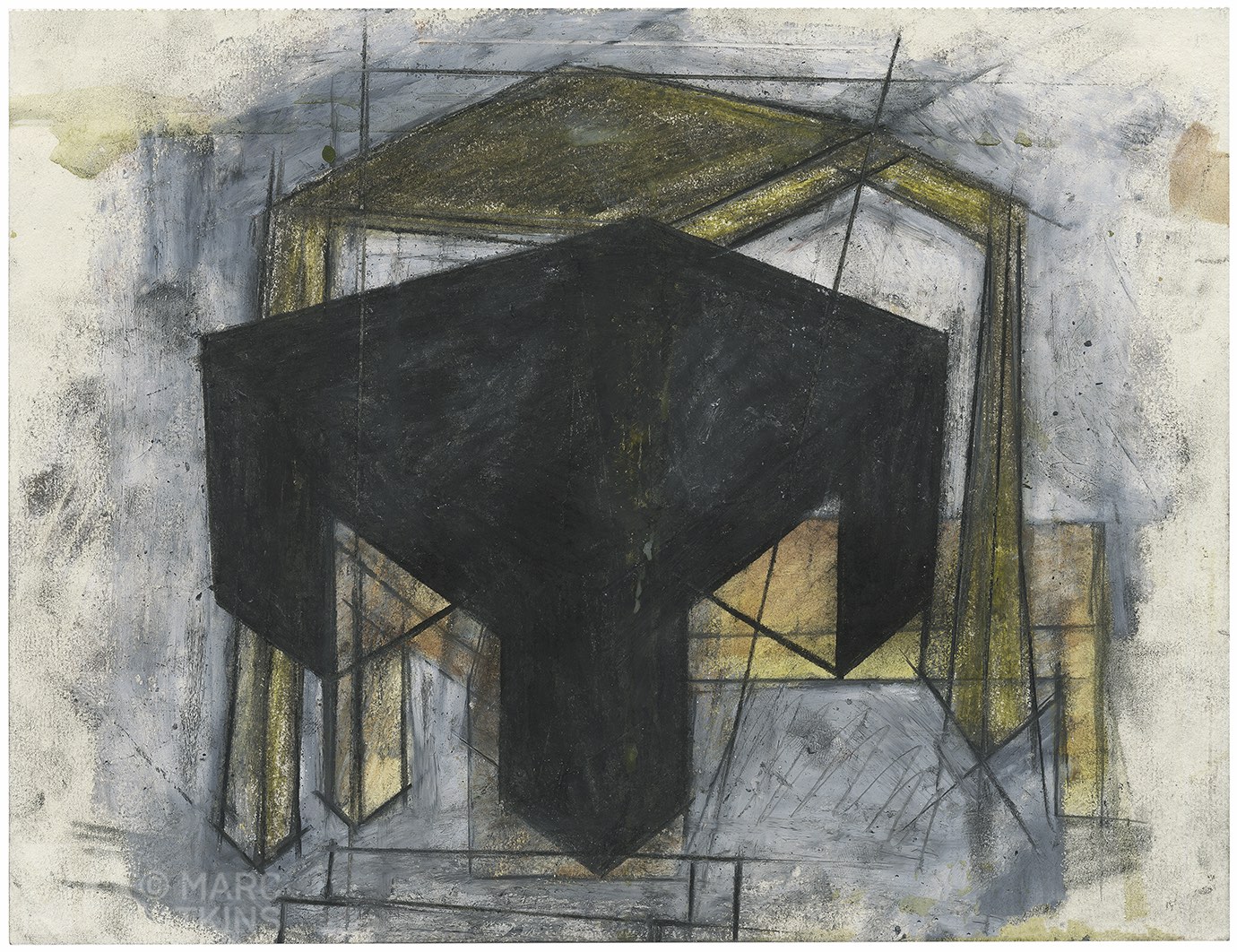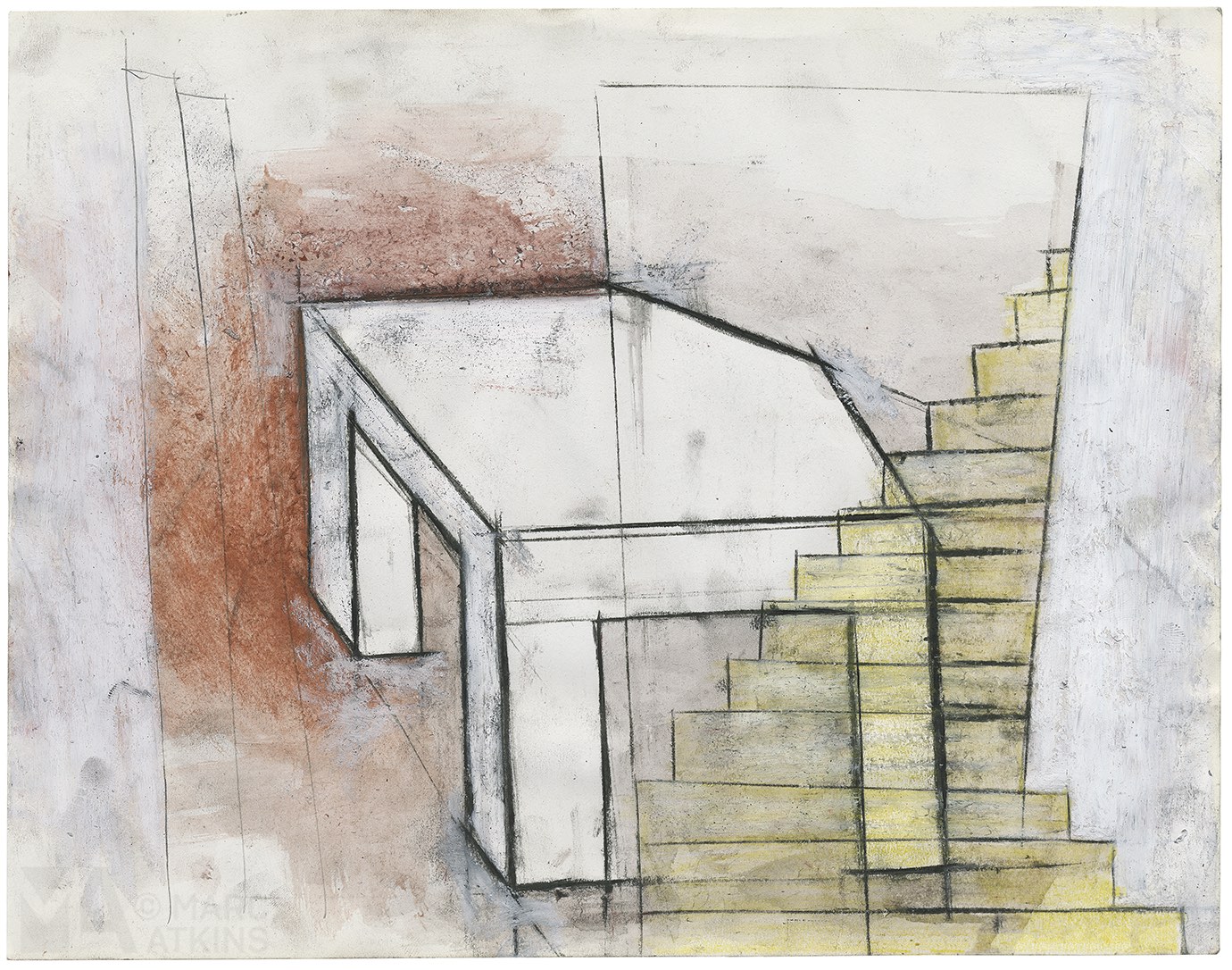 Marc Atkins, Table Building #753 (2017), Pastel, pencil, charcoal on watercolour paper (signed by the artist), 23cm x 29.3cm (Unique)