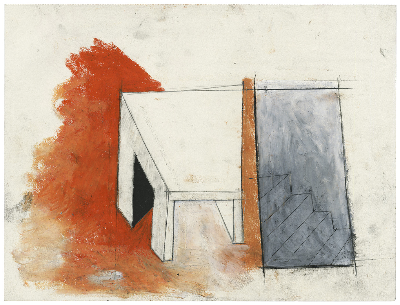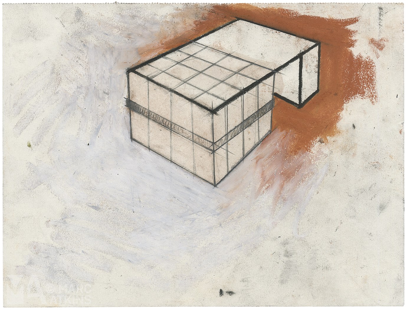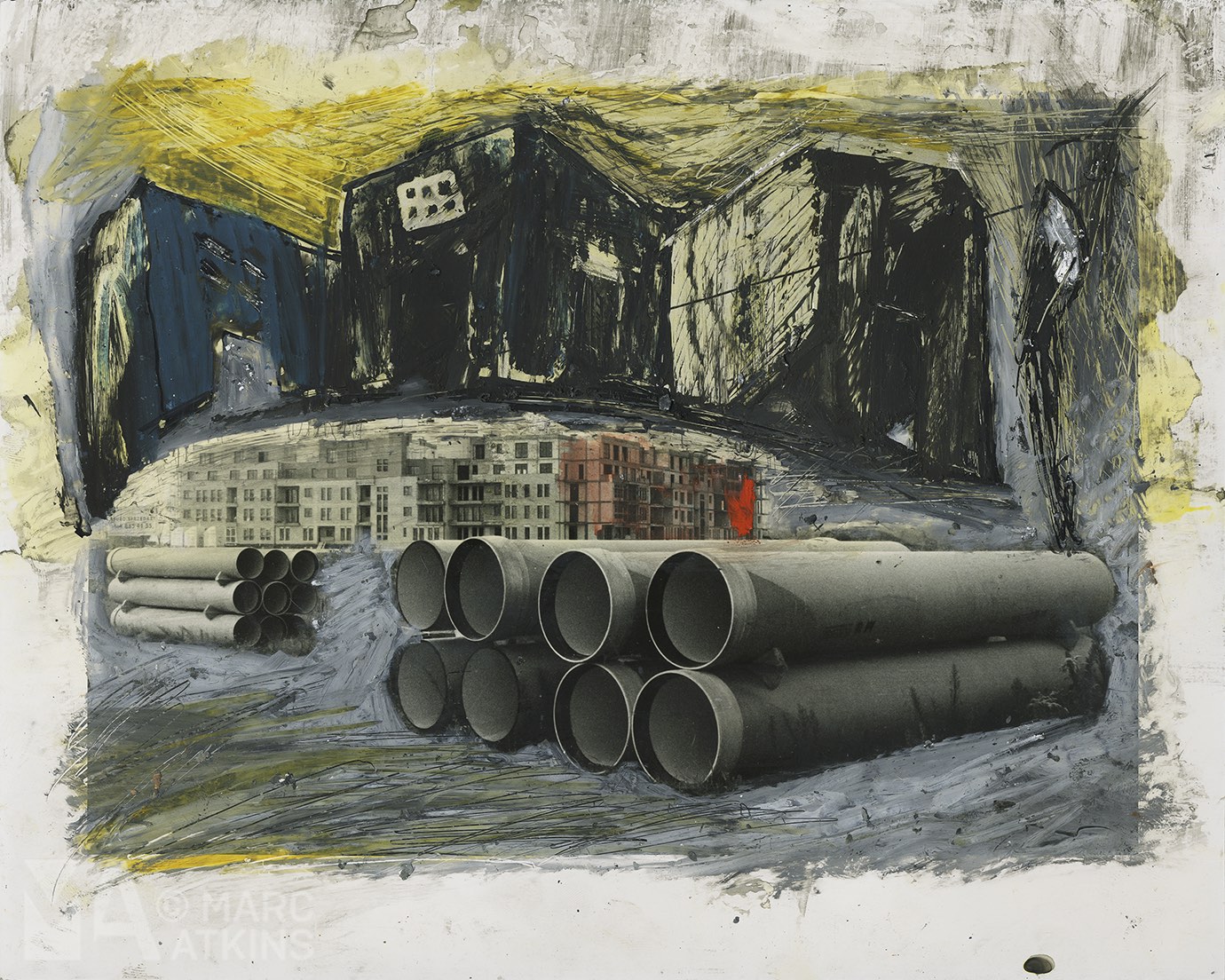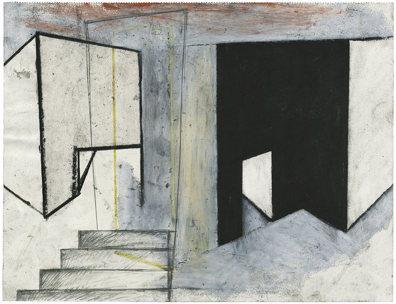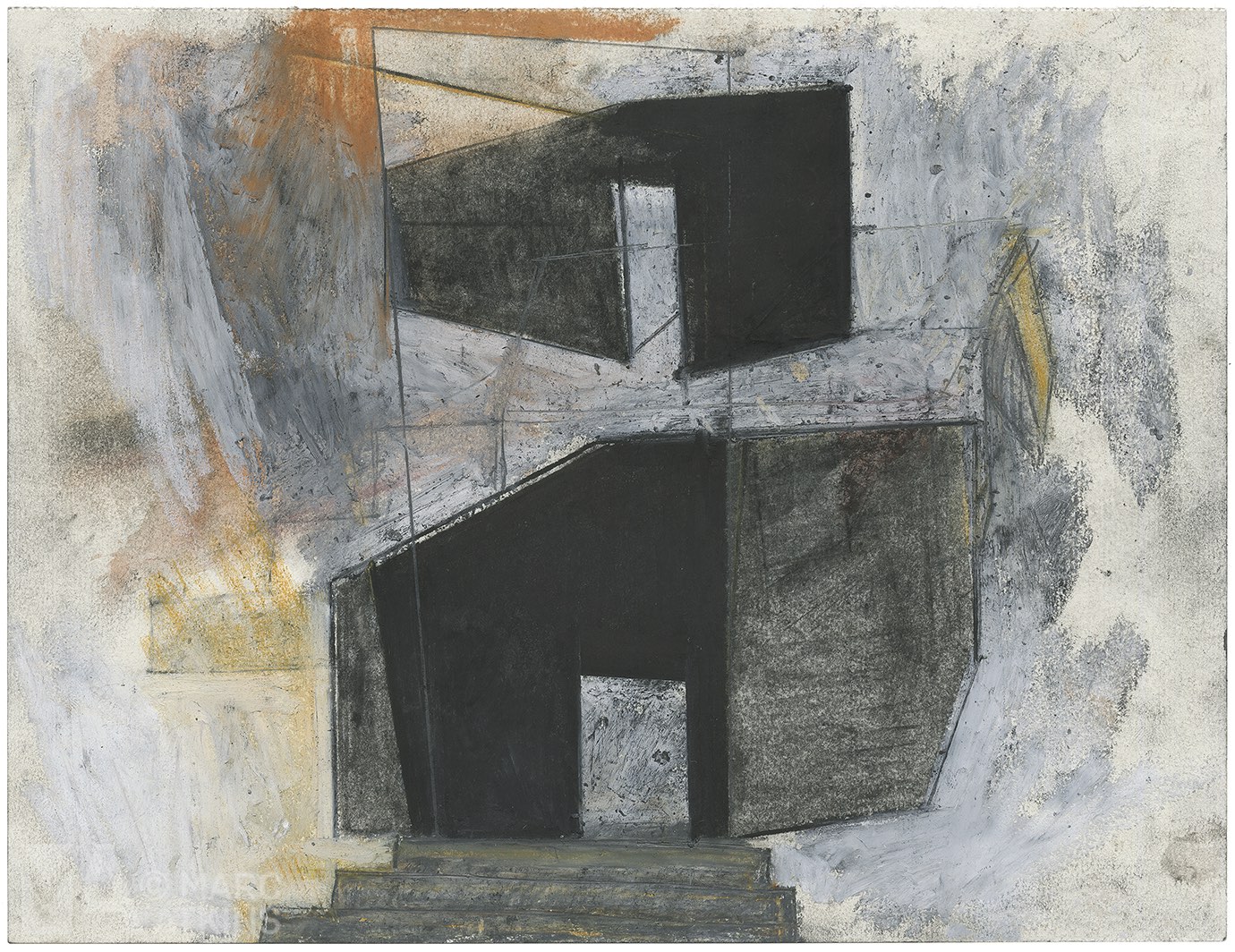 Marc Atkins, Table Building #753 (2017), Pastel, pencil, charcoal on watercolour paper (signed by the artist), 23cm x 29.3cm (Unique)