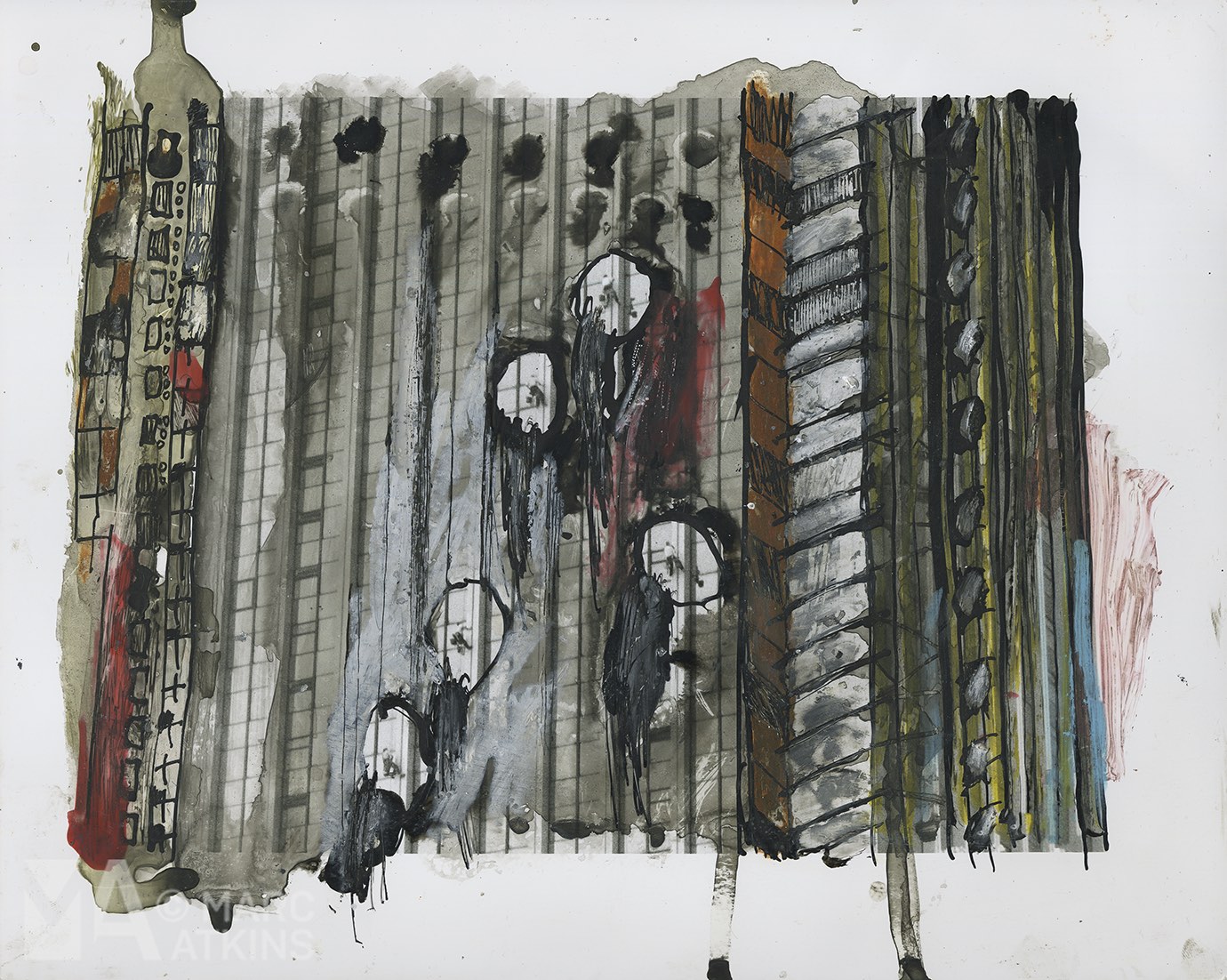 Marc Atkins, Table Building #455 (2017), Pastel, pencil, charcoal, Conté crayon, wax crayon, watercolour paint on watercolour paper (signed by the artist), 23cm x 29.3cm (unique)