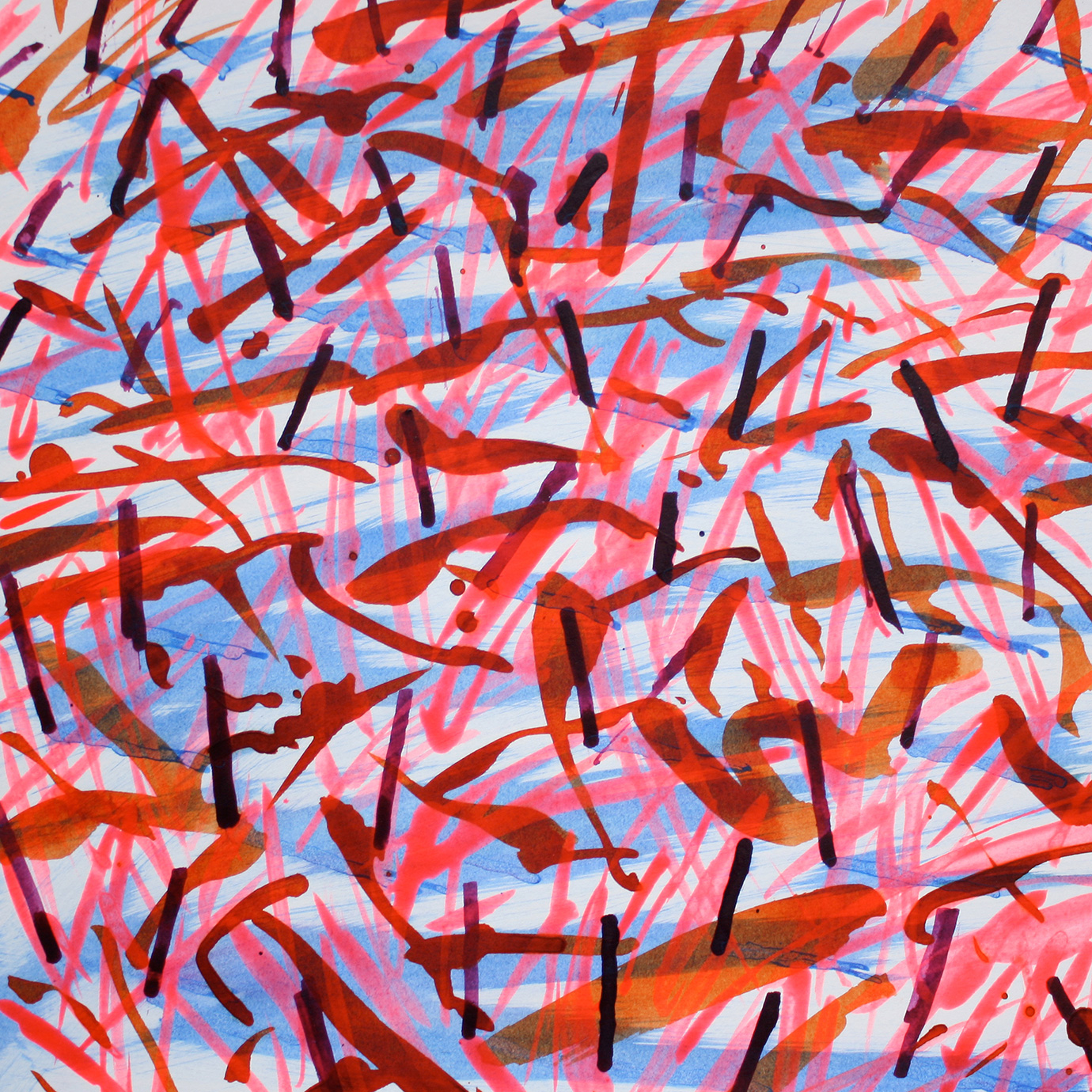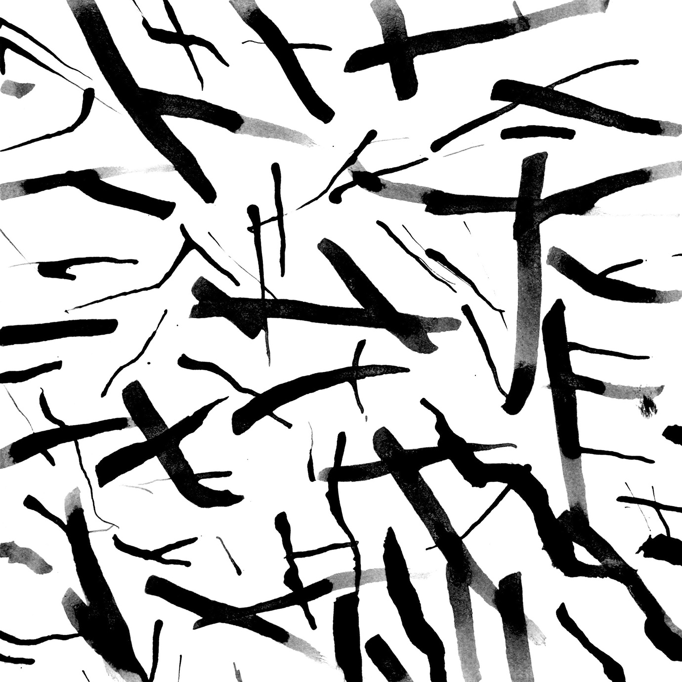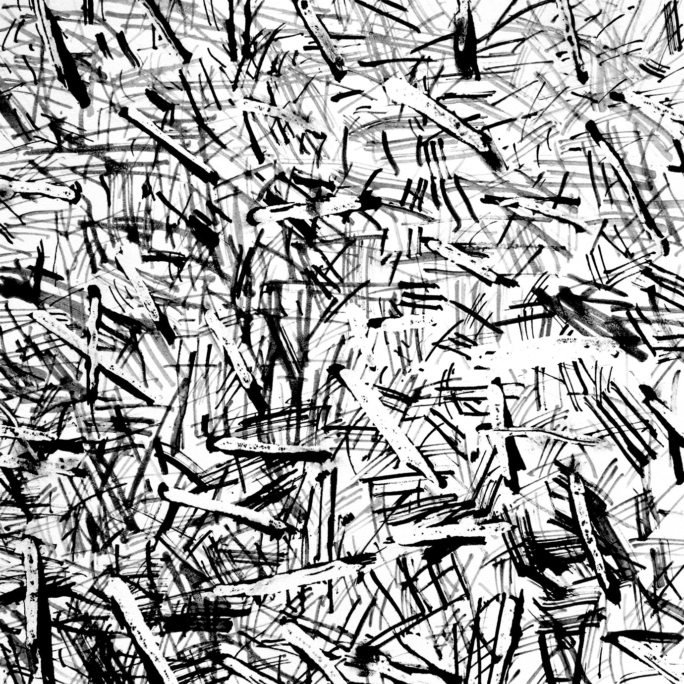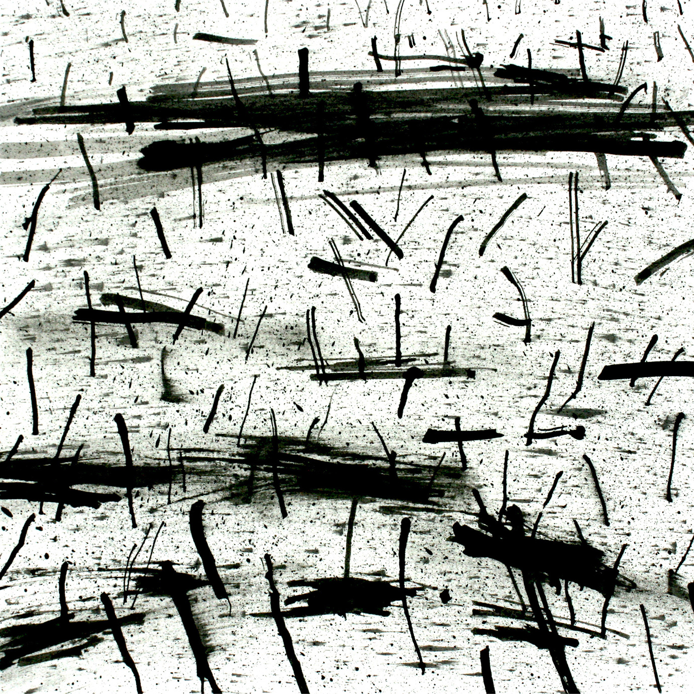 These are marks on paper that mirror the marks on the landscape made by humankind, and by movement; in turn, they reveal traces left by that landscape on the mind of the artist. Furthermore, each mark is also the result of the impact of art thereupon, as Parsons was reminded on these revelatory walks by the cut stalks of Van Gogh’s reed pen drawings. This led to his making such pens of his own, from bamboo, and in the works exhibited we chart a path of pens made from canes cut in to fine pen shapes, to ones created simply by breaking the canes in two, dipping them without hesitation in to ink