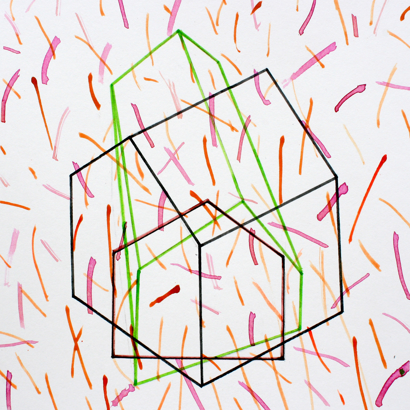 David Parsons, Falling Columns Green (2018), Ink on Heritage Paper (signed by the artist), 23.5cm x 24.5cm (Unique) (Detail)