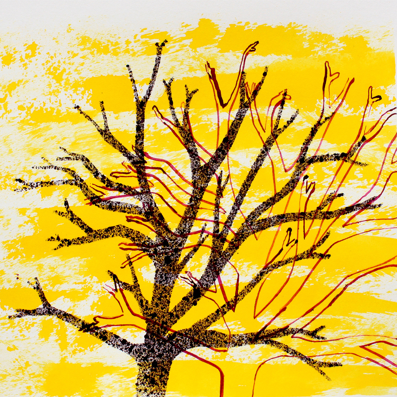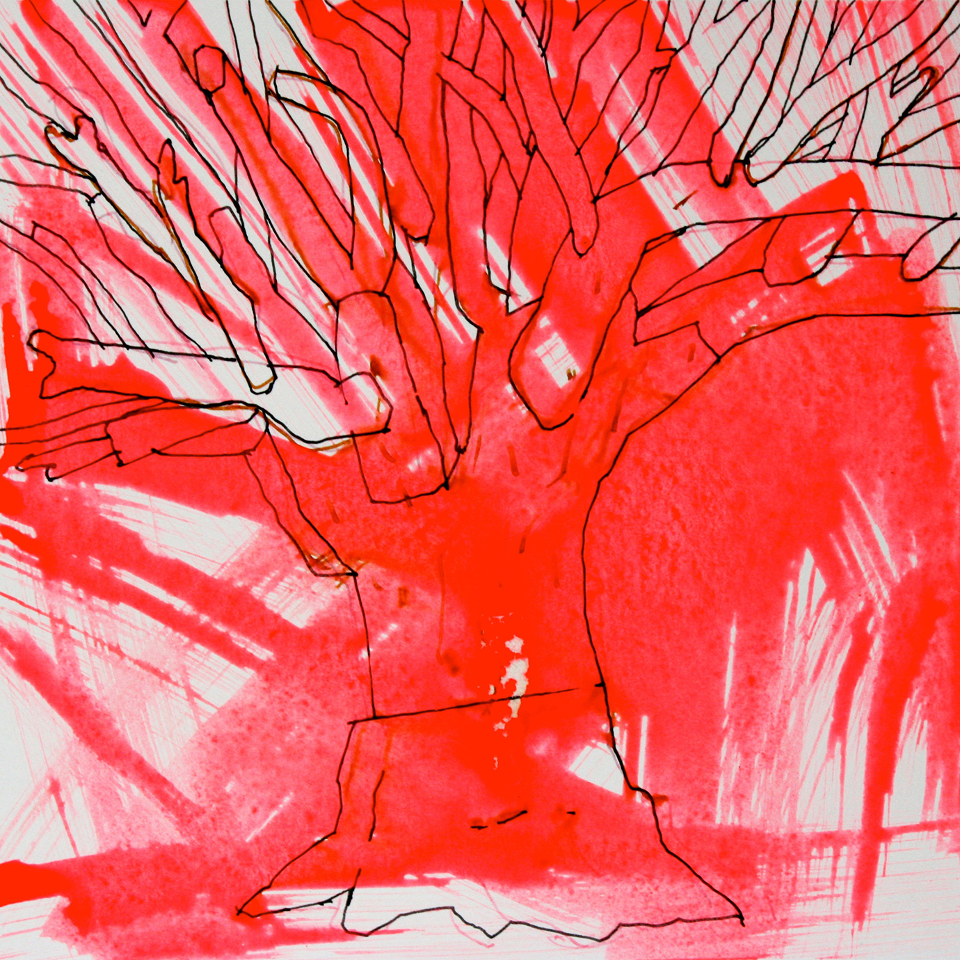 David Parsons, Red Tree After Ai Wei Wei (2018), Ink on Heritage Paper (signed by the artist), 24cm x 24.5cm (Unique) (Detail)