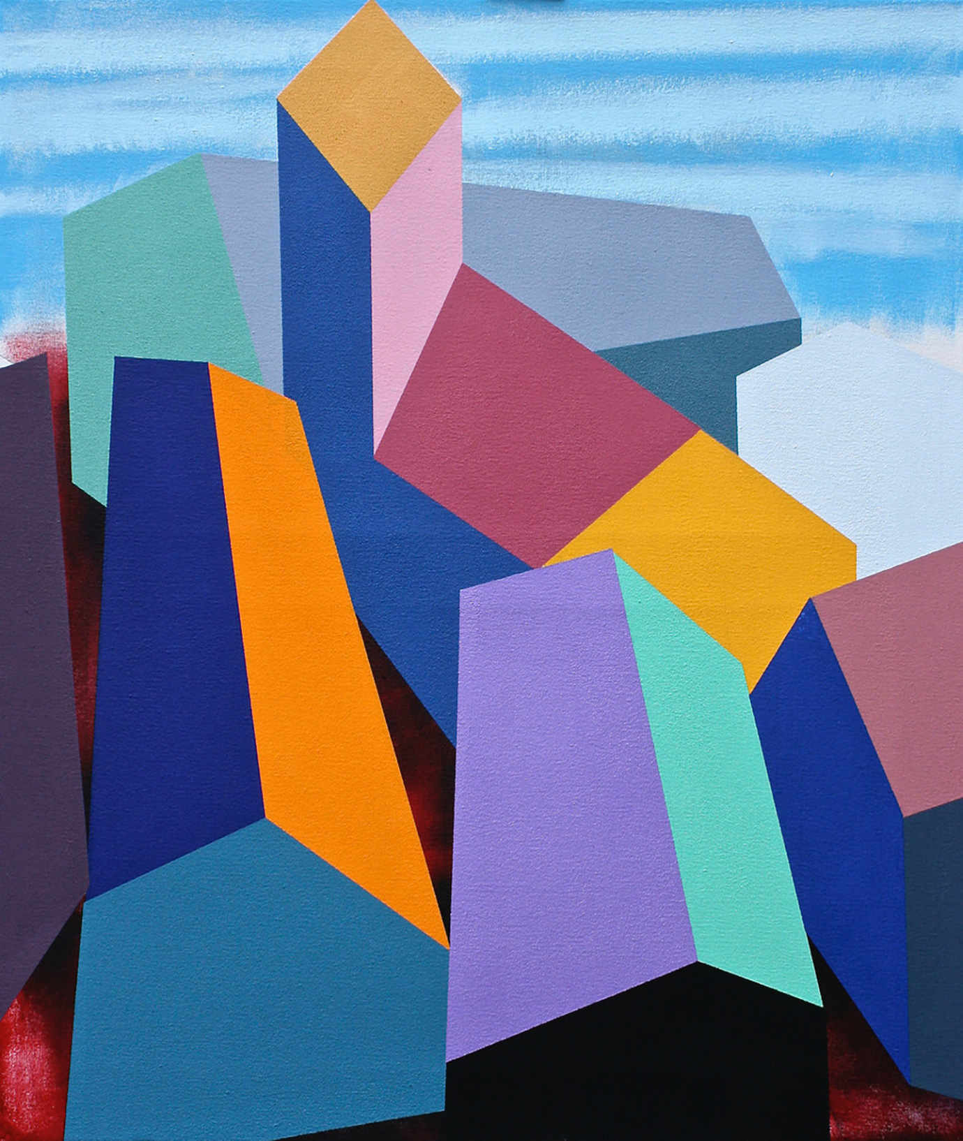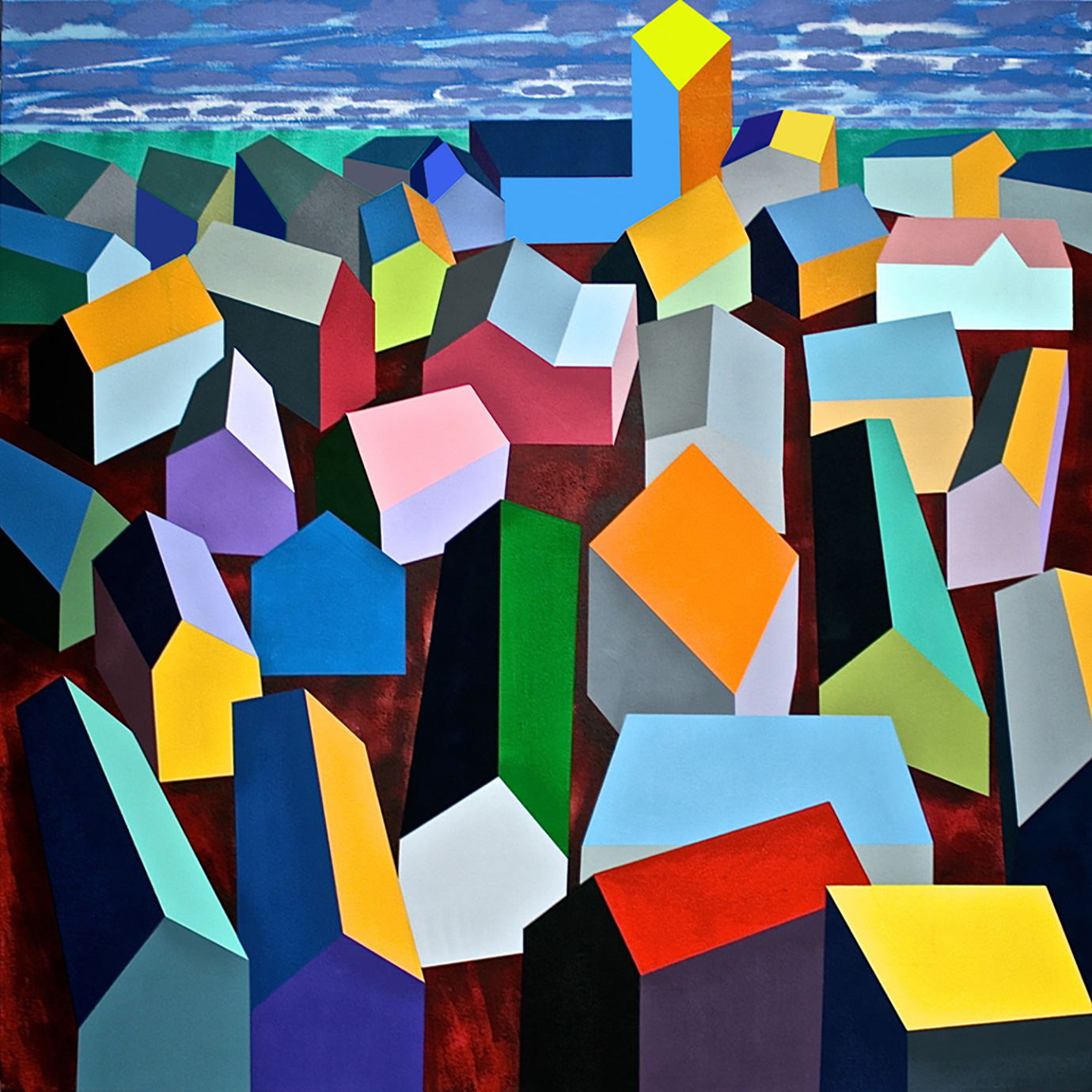 David Parsons, Houses on a Hill (2016), Oil on Canvas, 130cm x 130cm