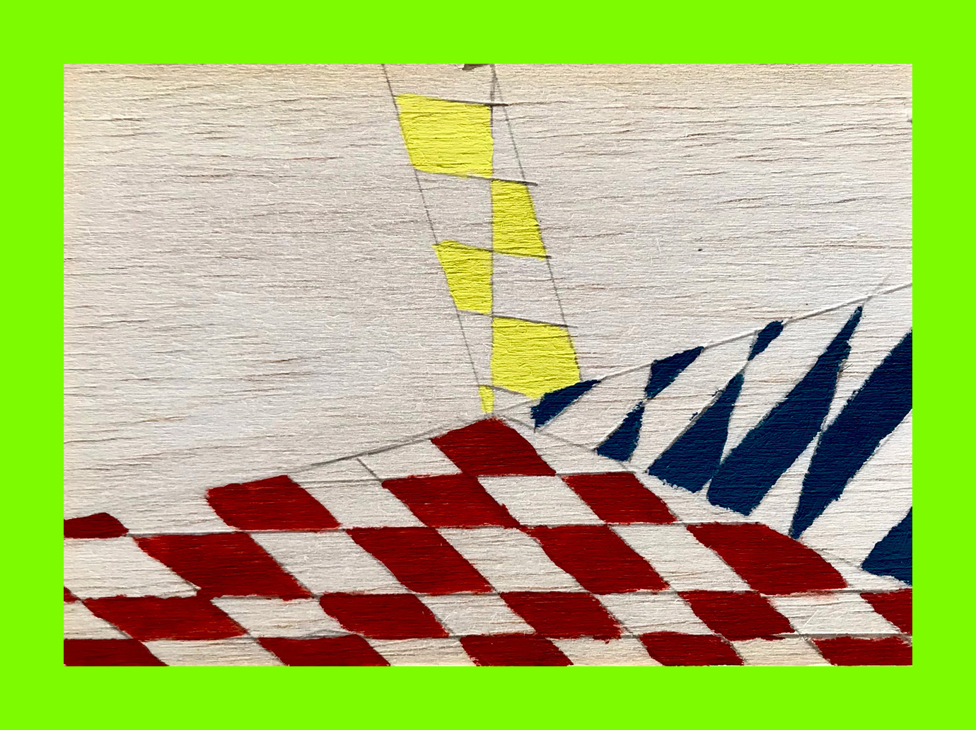 Ida Bertram, Untitled (A New Dimension) (Postcard Sent to Velorose from London, 2020), Paint and Pencil on Balsa (Unique) (Not for Sale)