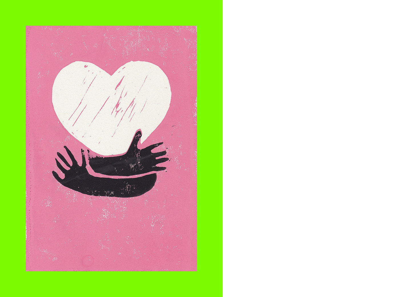 Nadine Fleischer, Love Hugs (Postcard Sent to Velorose from London, 2020), Linocut on Card (Unique) (Not for Sale)