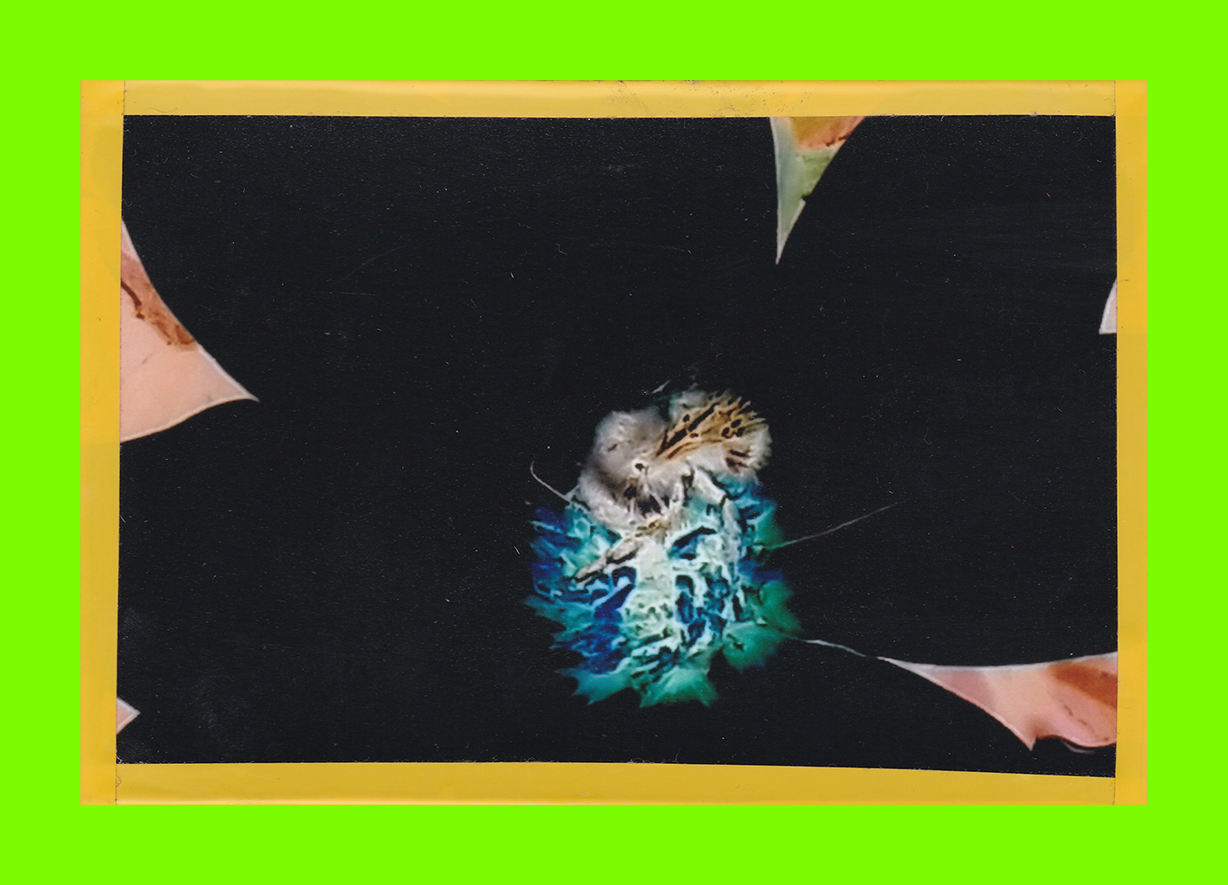 Debra Shipley, Toxic Planet (Postcard Sent to Velorose from Norwich, 2020), Manipulated Photograph on Card with Adhesive Tape (Unique) (Not for Sale)