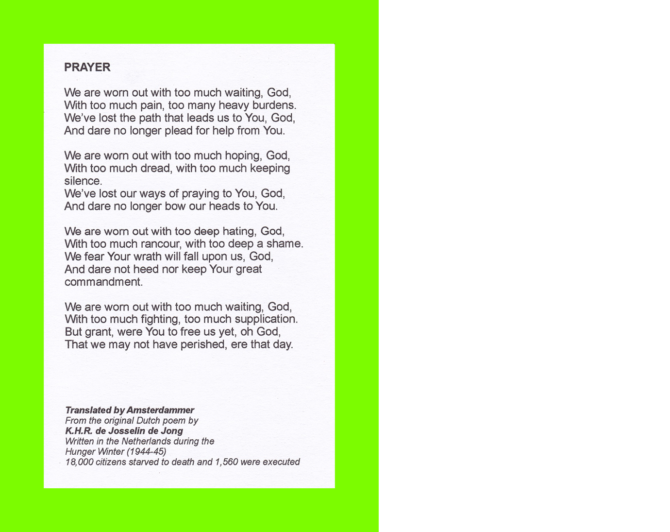 Amsterdammer, Prayer (Postcard Sent to Velorose from London, 2020), Print-Out on Card (Unique) (Not for Sale)
