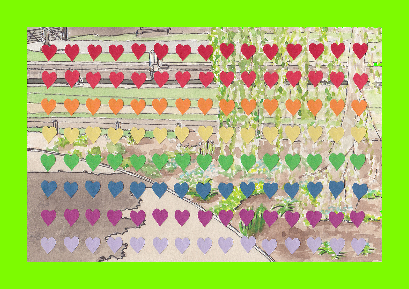 Natalia Keable, Untitled (Bee-Rainbow) (Postcard Sent to Velorose from London, 2020), Card and Print-Out on Card (Unique) (Not for Sale)