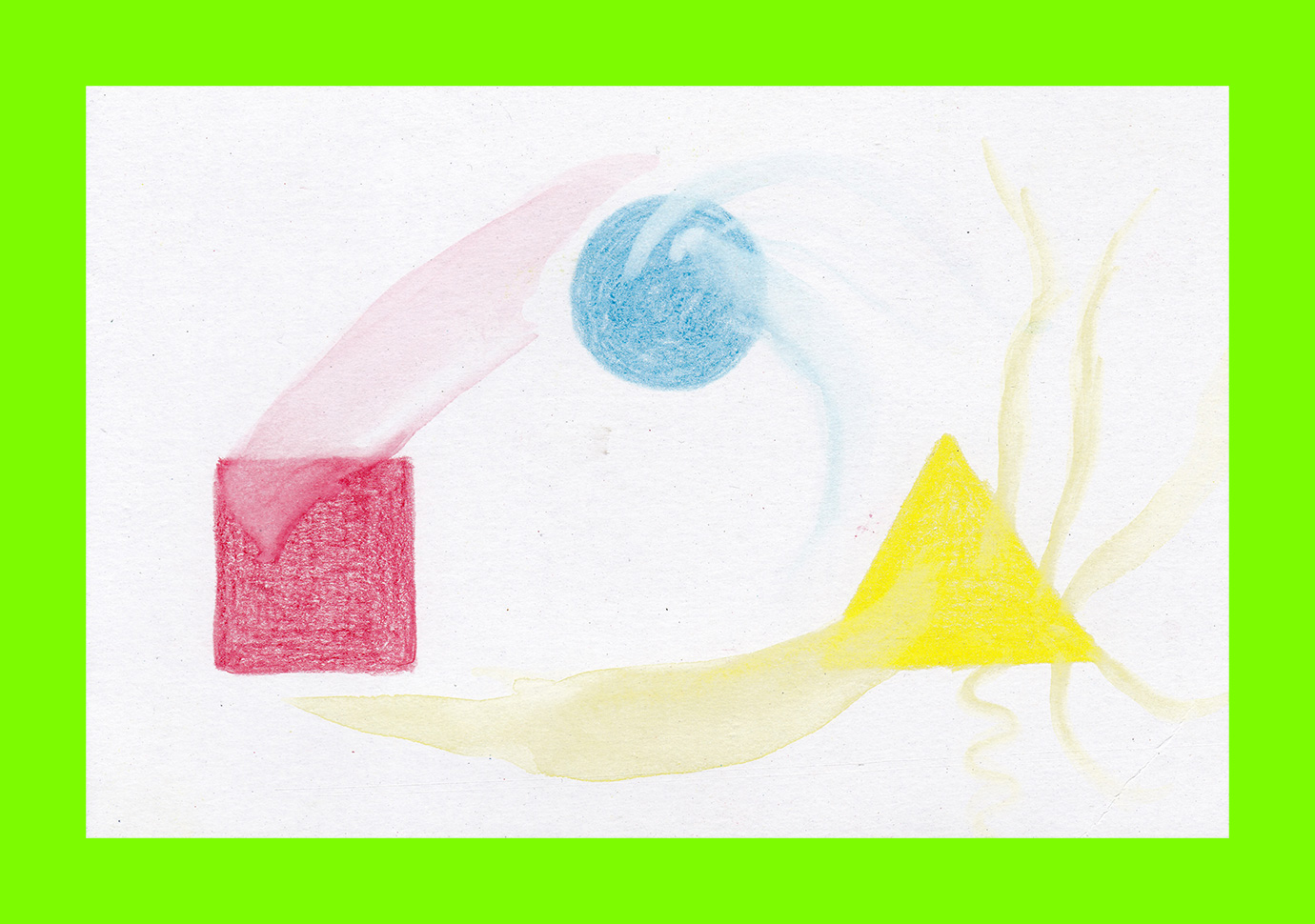 Melissa Green, Primary Colours (Postcard Sent to Velorose from London, 2020), Watercolour Pencils on Card (Unique) (Not for Sale)