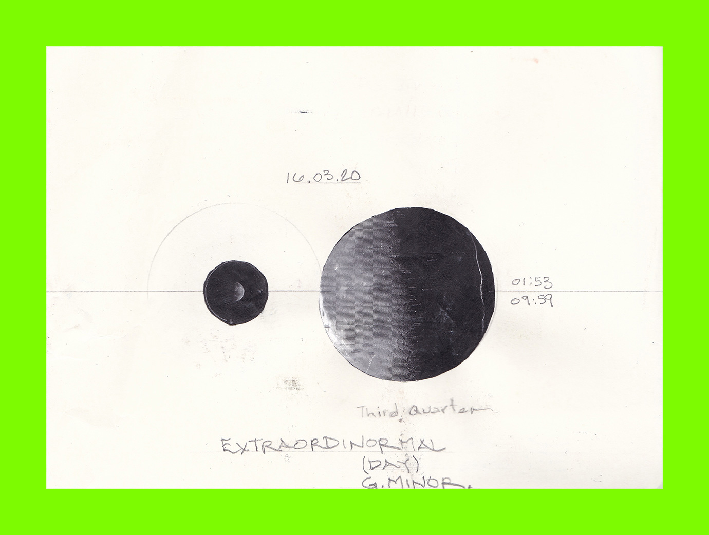 Marlon Studios, Extraordinormal (Day) G. Minor. (Postcard Sent to Velorose from London, 2020), Graphite on Printed Paper (Unique) (Not for Sale)