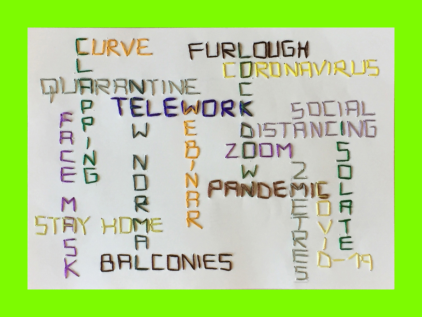 Federico Ortiz, Untitled (Corona Words) (Postcard Sent to Velorose from London, 2020), Coloured Thread on Paper (Unique) (Not for Sale)