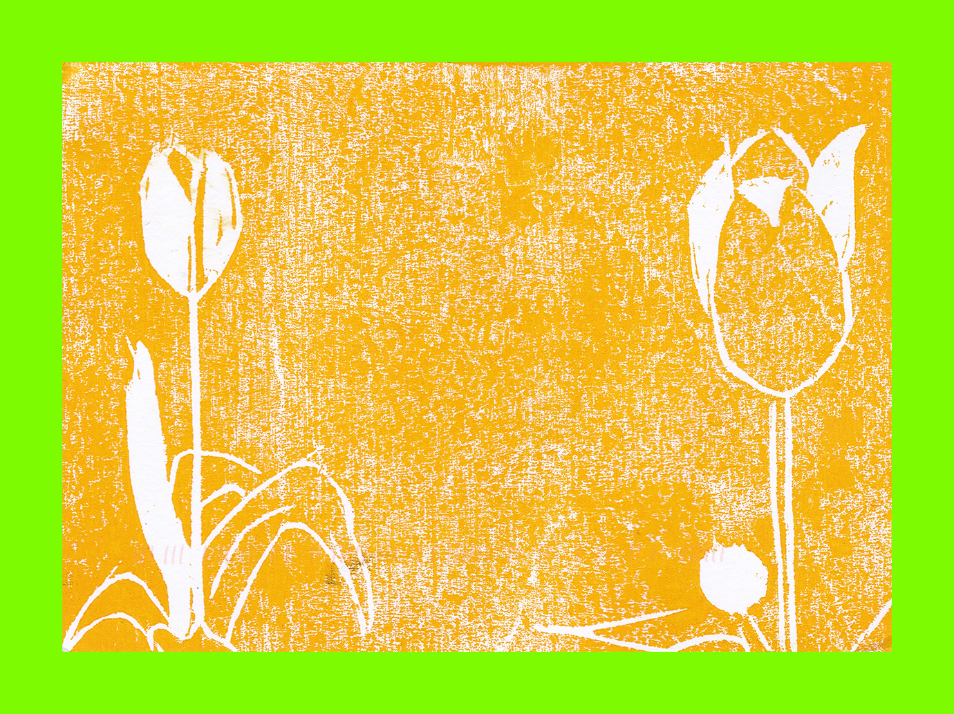 Mechleen Altermatt, Gelbe Tulpen (Yellow Tulips) (Postcard Sent to Velorose from Fischental, 2020), Woodcut Print on Card (1/1) (Not for Sale)