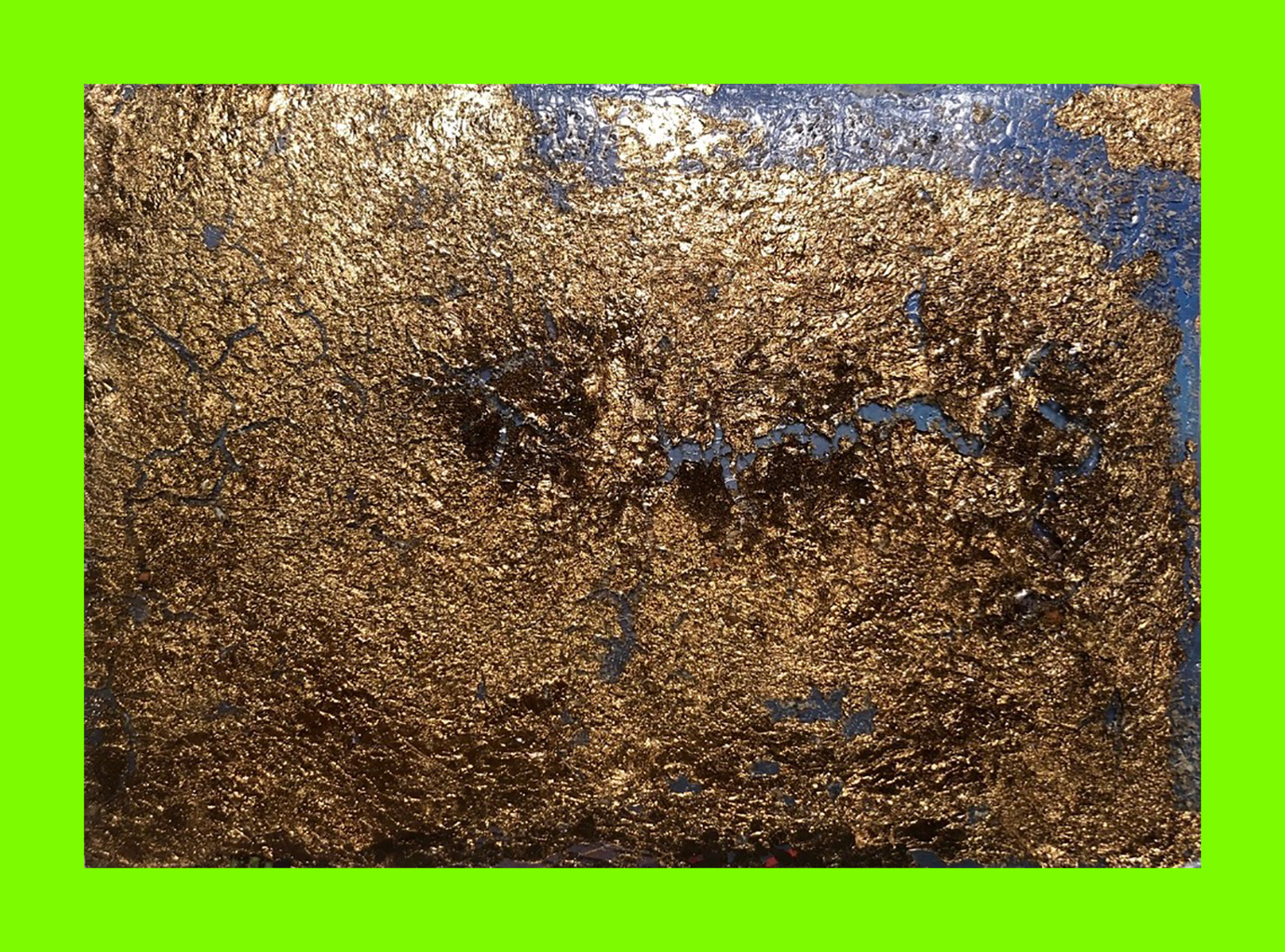 Evie Salmon, A Conjuration of Kernow (Art in Isolation) (Postcard Sent to Velorose from Cambridge, 2020), Gold Leaf, Sea Water, Sand and Ink on Cornish Postcard (Obverse) (Unique) (Not for Sale)