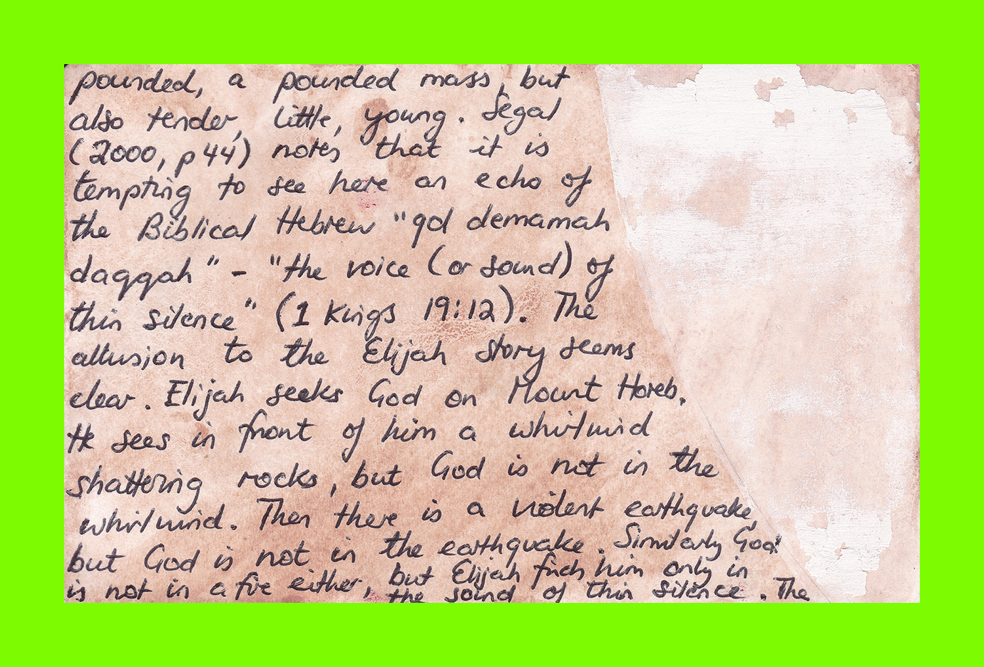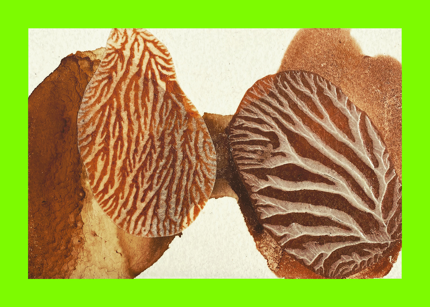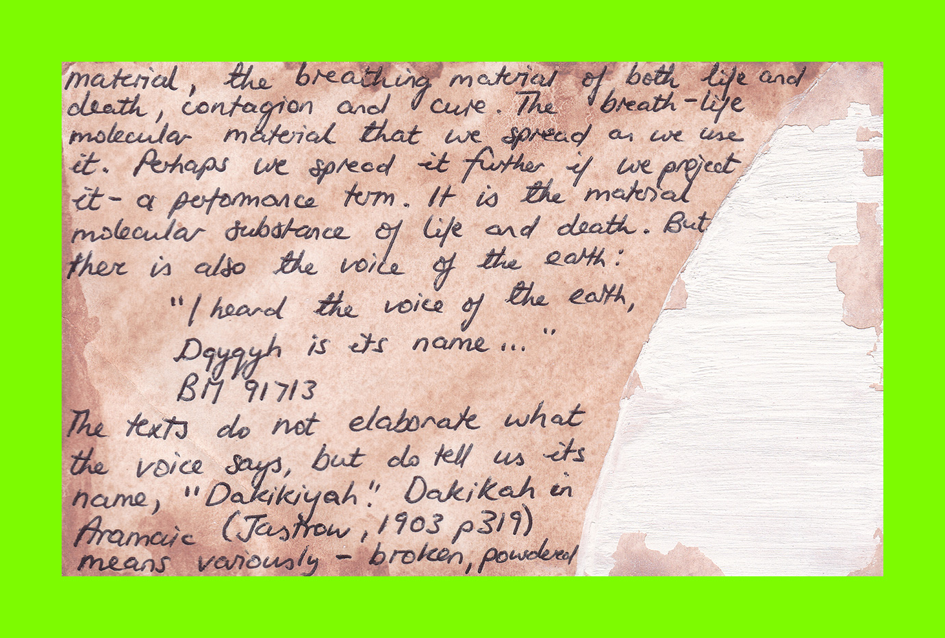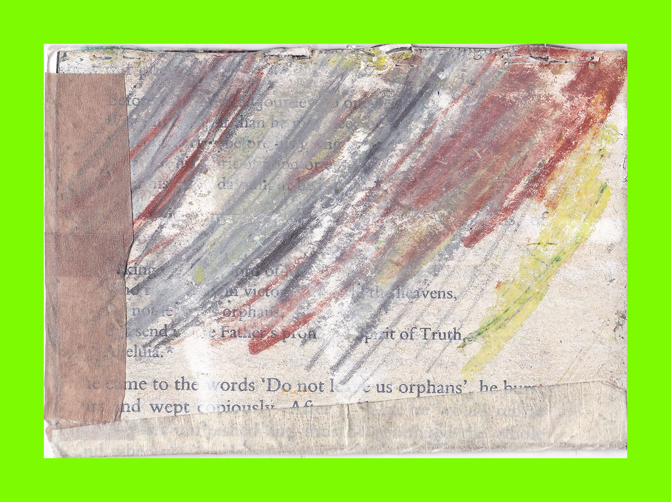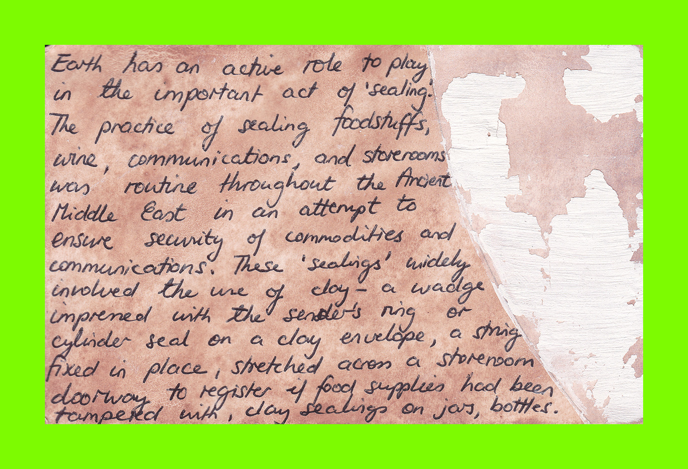 Sam Hodge, Home Work (Postcard Sent to Velorose from London, 2020), Mixed Media Collage on laminated Watercolour Paper using Pigments made from Brick Dust, Dustbin Rust, Tea, Avocado Stone and Dover White Cliff Chalk (Unique) (Not for Sale)