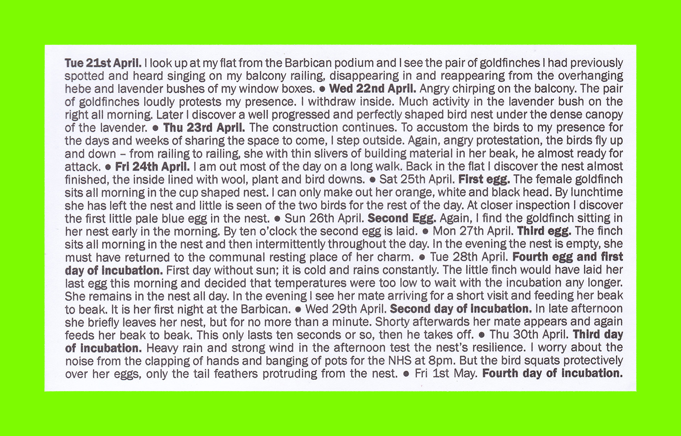 Jan Petroschka, Untitled (Shared Balcony Log) (Postcard Sent to Velorose from London, 2020), Desktop Published Document Printed and Stuck to Card (Obverse) (Unique) (Not for Sale)