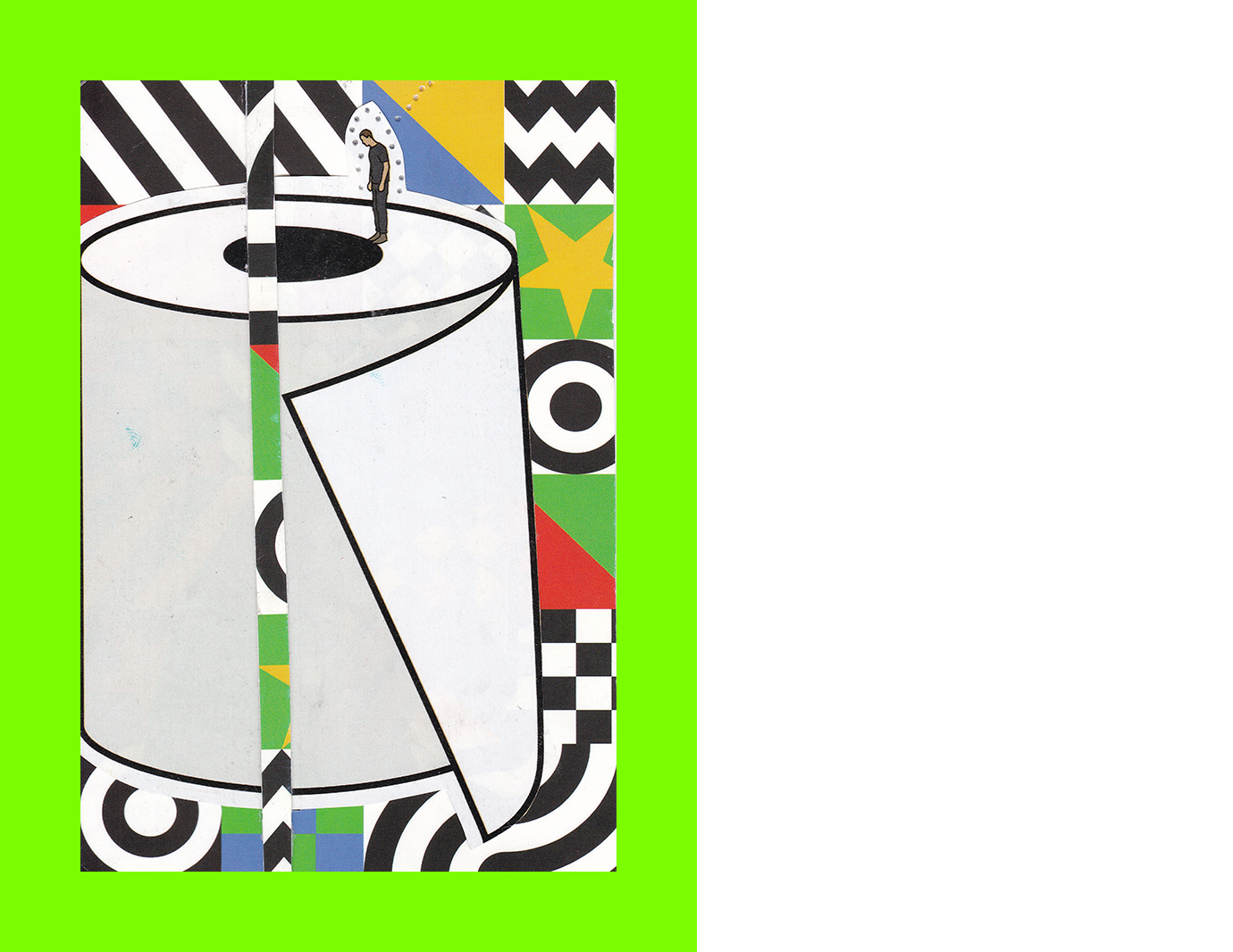 Clare Barry, Down the Drain (Postcard Sent to Velorose from London, 2020), Magazine Pages on Cut Peter Blake Postcard with Perforations (Unique) (Not for Sale)