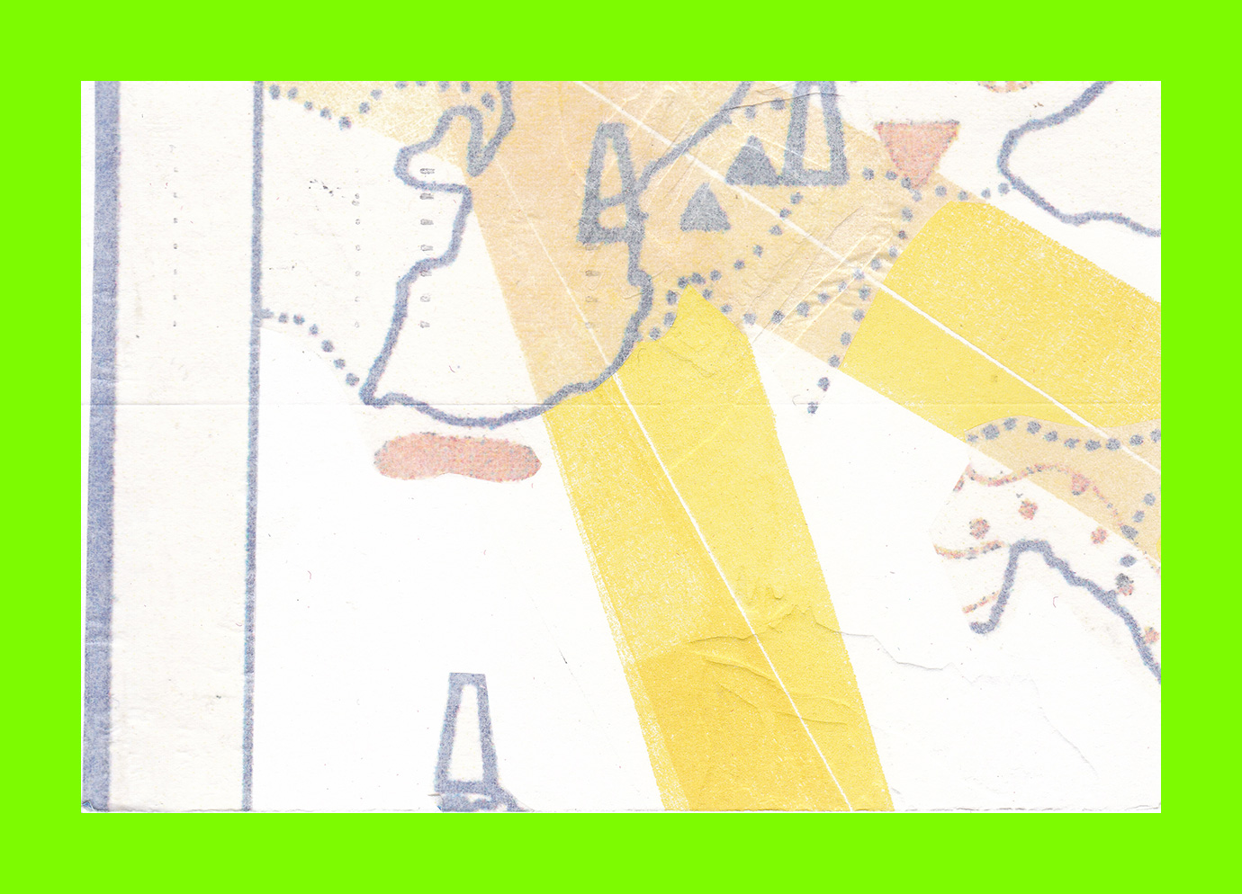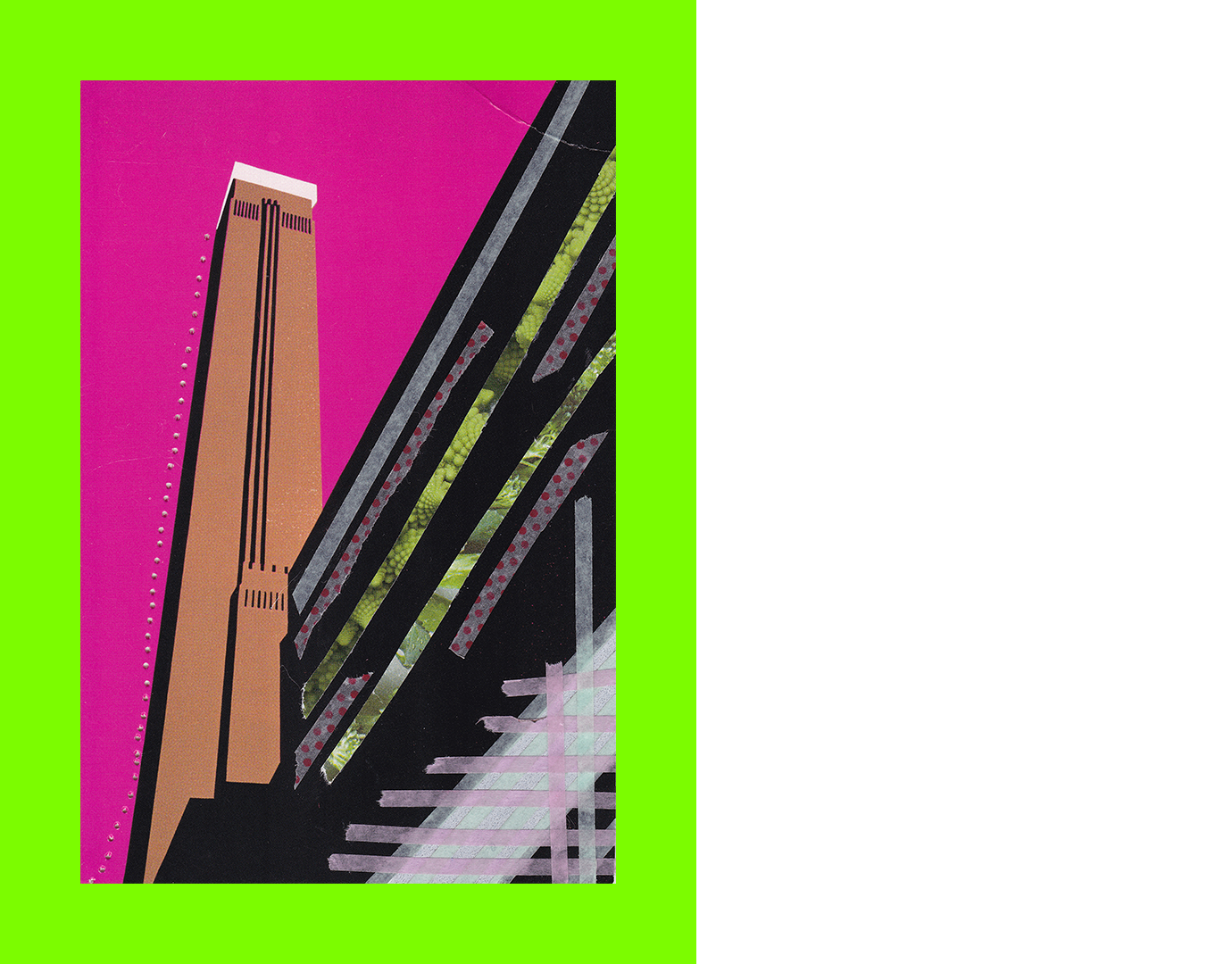 Sarah Bird, Inside Out (Postcard Sent to Velorose from London, 2020), Laser Print Collage and Washi Tape on Adhesive Plasticised Mesh on Board (Unique) (Not for Sale)