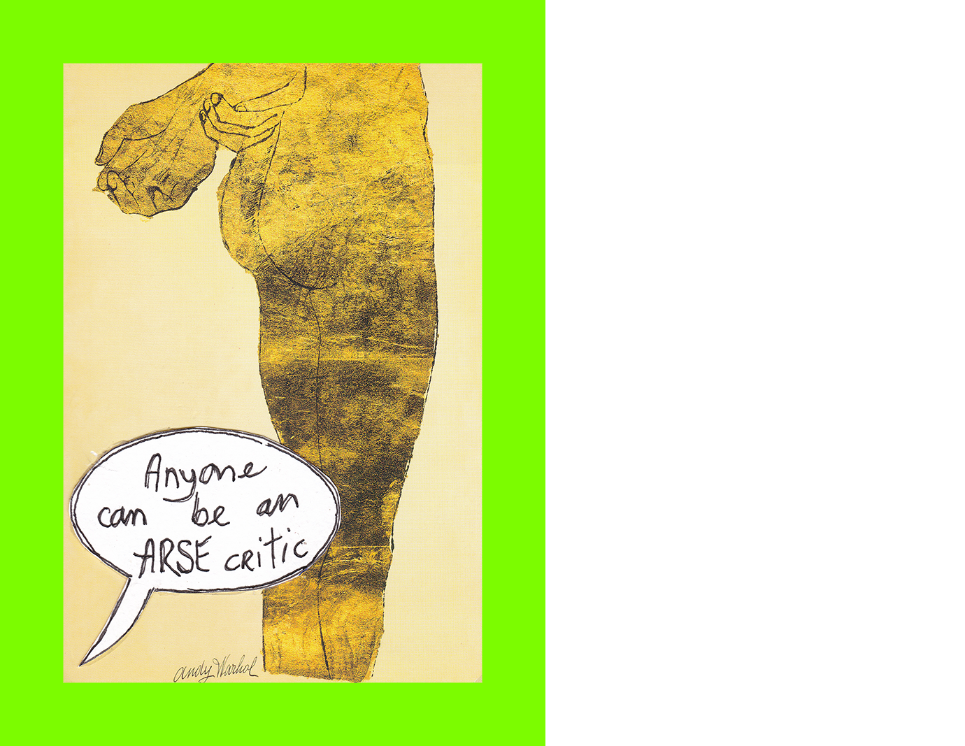 John Hobbs, Anyone can be an ARSE Critic (Postcard Sent to Velorose from London, 2020), Ink on Paper on Andy Warhol Postcard (Unique) (Not for Sale)