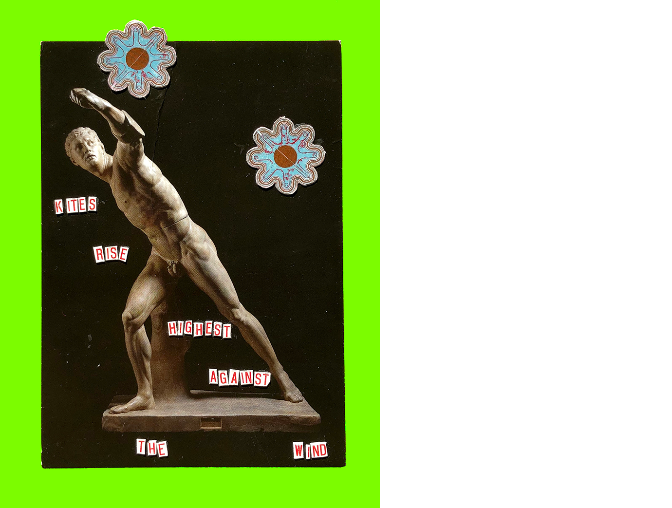 D. M. Nagu, Kunst! (Postcard Sent to Velorose from Berlin, 2020), Collaged Book Pages on Card (Unique) (Not for Sale)