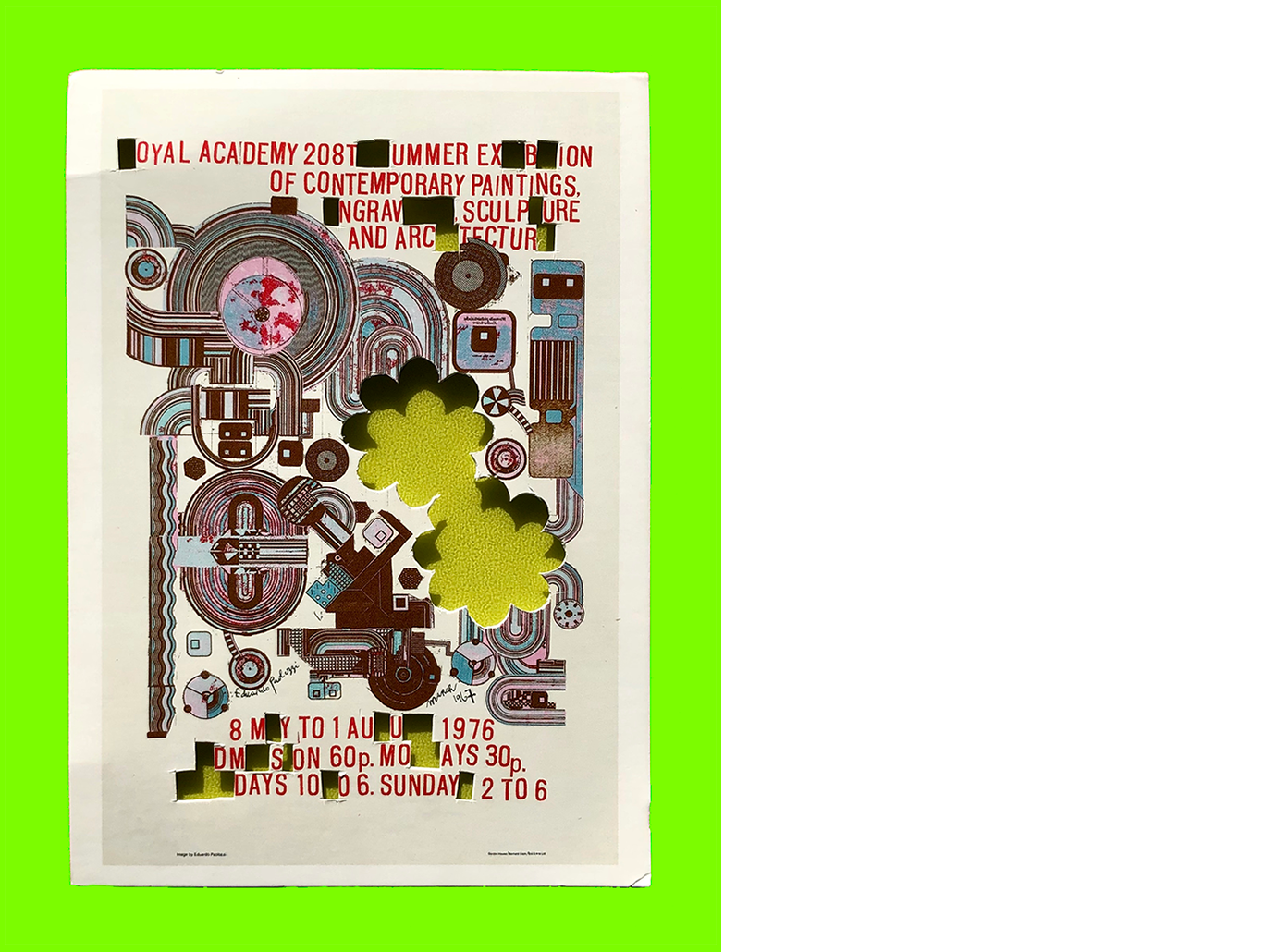 David Walker, Negative JuJu (Postcard Sent to Velorose from London, 2020), Collaged Royal Academy Postcard on Royal Academy Postcard (Unique) (Not for Sale)