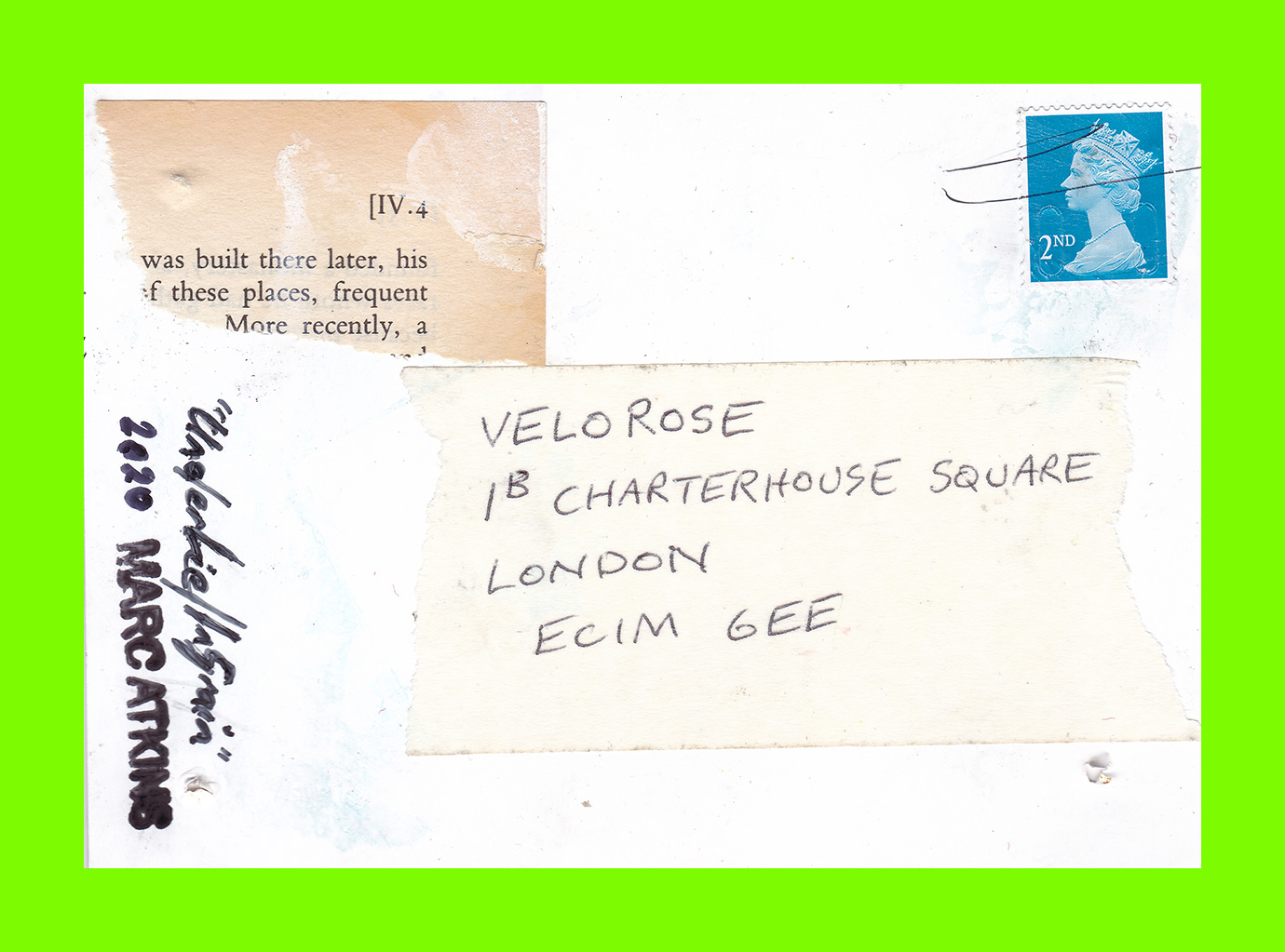 Anonymous, Supernature (Postcard Sent to Velorose from London, 2020), AstroTurf with Adhesive Label (Unique) (Not for Sale)