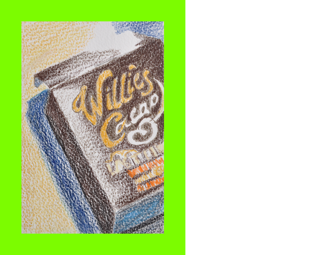 Celia Scott, Willie’s Cacao (Postcard Sent to Velorose from London, 2020), Crayon on Watercolour Postcard (Unique) (Not for Sale)