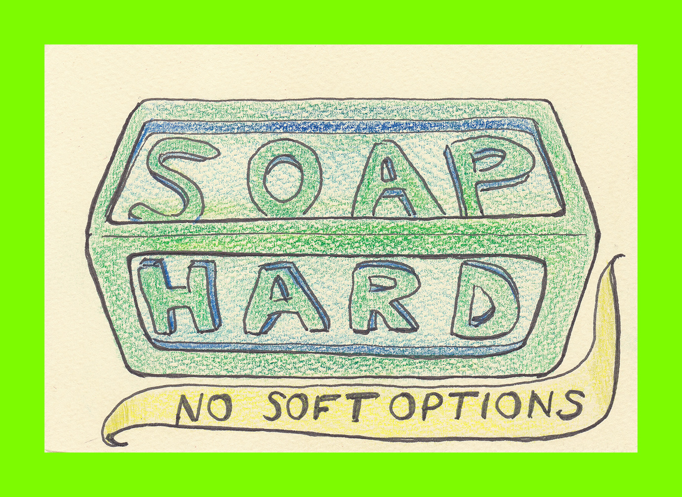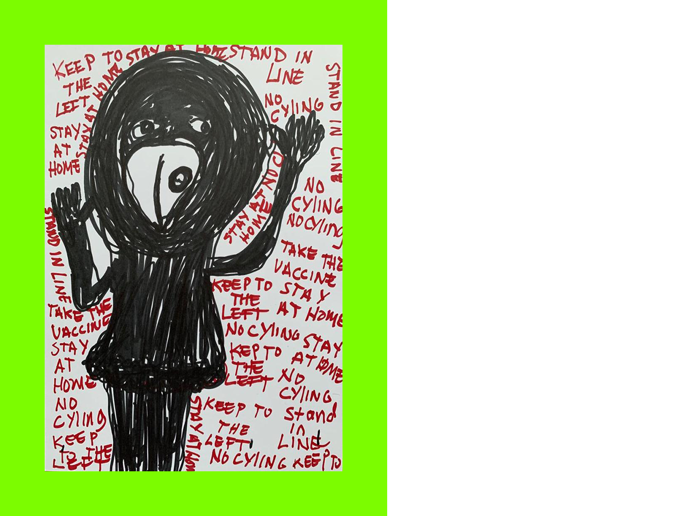 John Ramsey, No Soft Options (Postcard Sent to Velorose from London, 2020), Ink and Crayon on Laminated Papers (Unique) (Not for Sale)