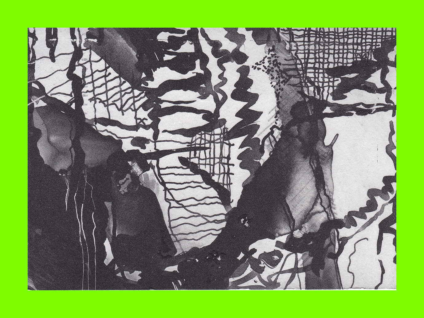 Marcelle Hanselaar, ELEMENTAL-ESSENTIAL (Postcard Sent to Velorose from London, 2020), Linocut on Newsprint on Card (Unique) (Not for Sale)
