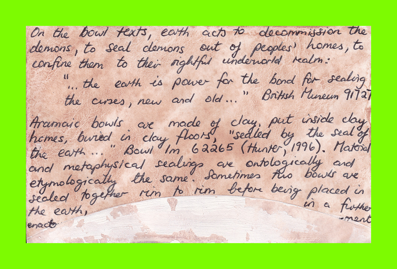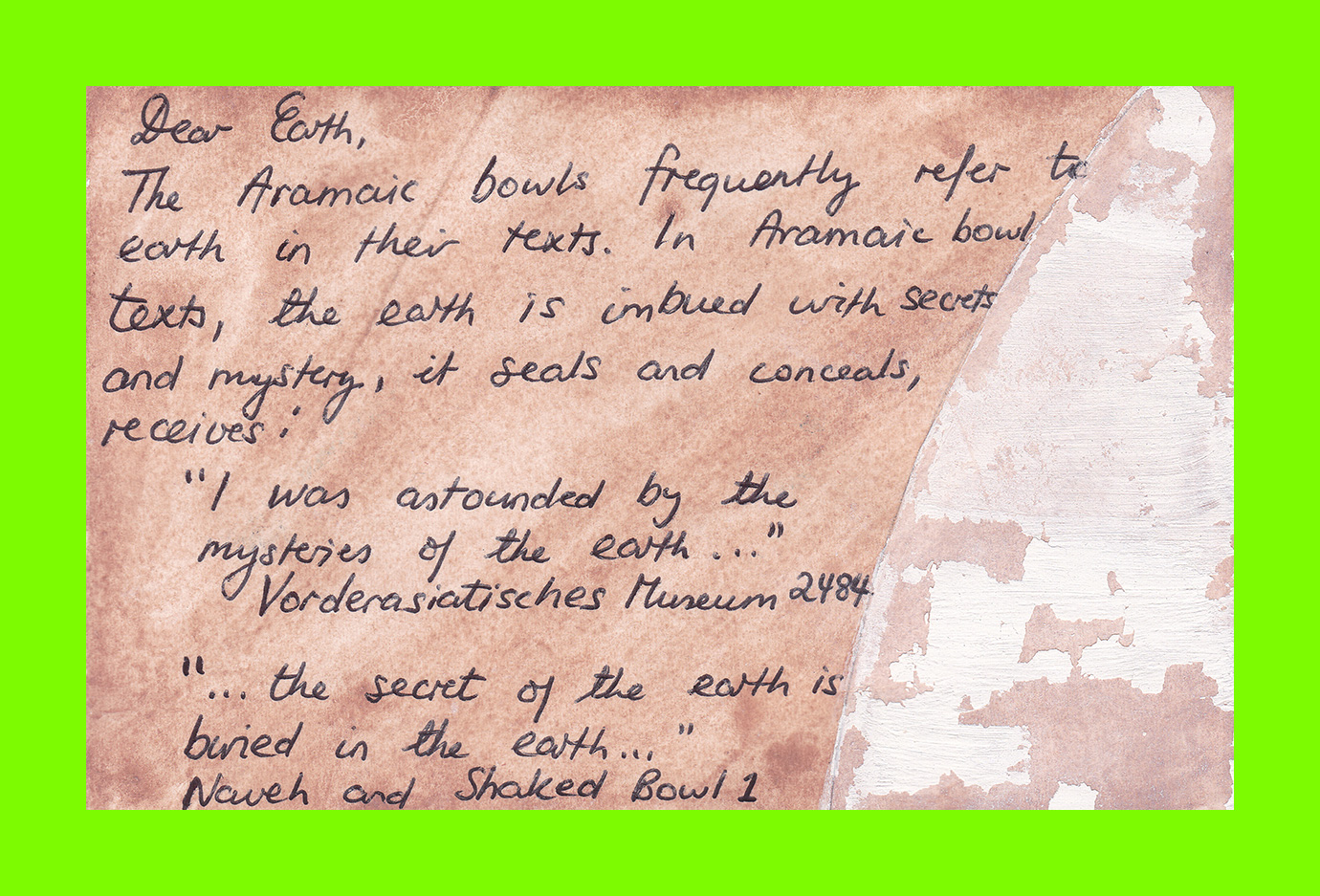 Sue Goldschmidt, Dear Earth #1 of 8 (The Aramaic Bowls) (Postcard Sent to Velorose from London, 2020), Porcelain, Ink and Watercolour Paint on Found Postcard (Unique) (Not for Sale)