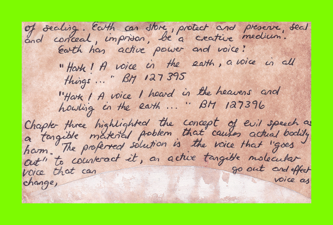 Sue Goldschmidt, Dear Earth #3 of 8 (The Earth is Power) (Postcard Sent to Velorose from London, 2020), Porcelain, Ink and Watercolour Paint on Found Postcard (Unique) (Not for Sale)