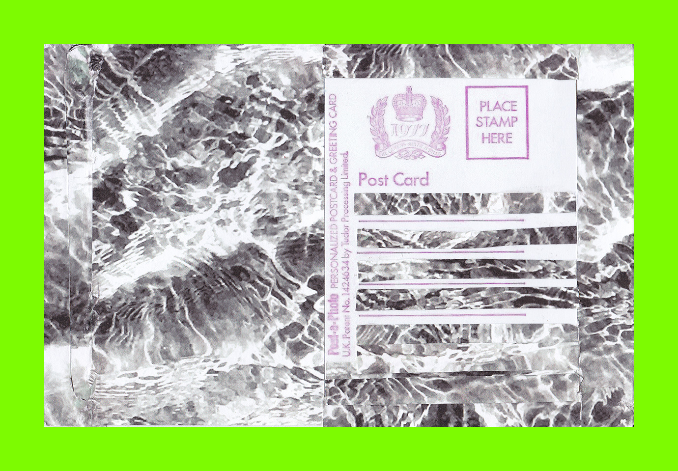 Milena Michalski, All at Sea (Postcard Sent to Velorose from London, 2020), Collage on Scan of 1977 Postcard (Unique) (Not for Sale)