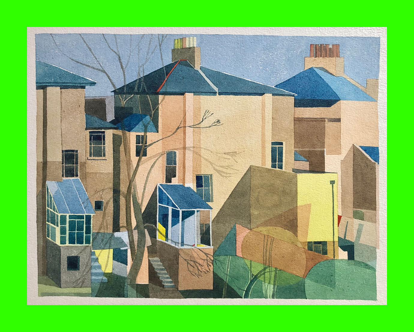 On a visit to Kit’s studio in 2017 to select oil paintings for his successful 2018 solo exhibition ‘Primitive Huts, Natural Landscape', David was struck by a small watercolour hanging above Kit’s desk. The story that emerged, and the image, remained with David and came to mind when thinking of art under lockdown: Kit had painted ‘Back Gardens’ when confined to his home in Islington for six weeks in 1973, and continued to paint with watercolours, but has typically considered his oil paintings for exhibition. Velorose is privileged to be exhibiting for the first time watercolours painted by Kit from the 1970s and 1980s