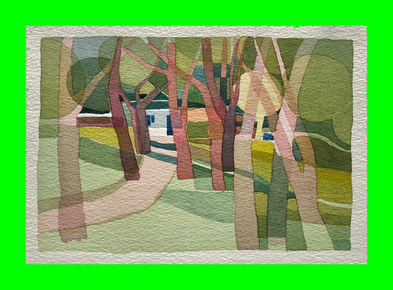 Kit Allsopp, Untitled (Pathway through Trees) (1980s), Watercolour on Paper, 110mm x 160mm (Image Size) (Unique) (£200)