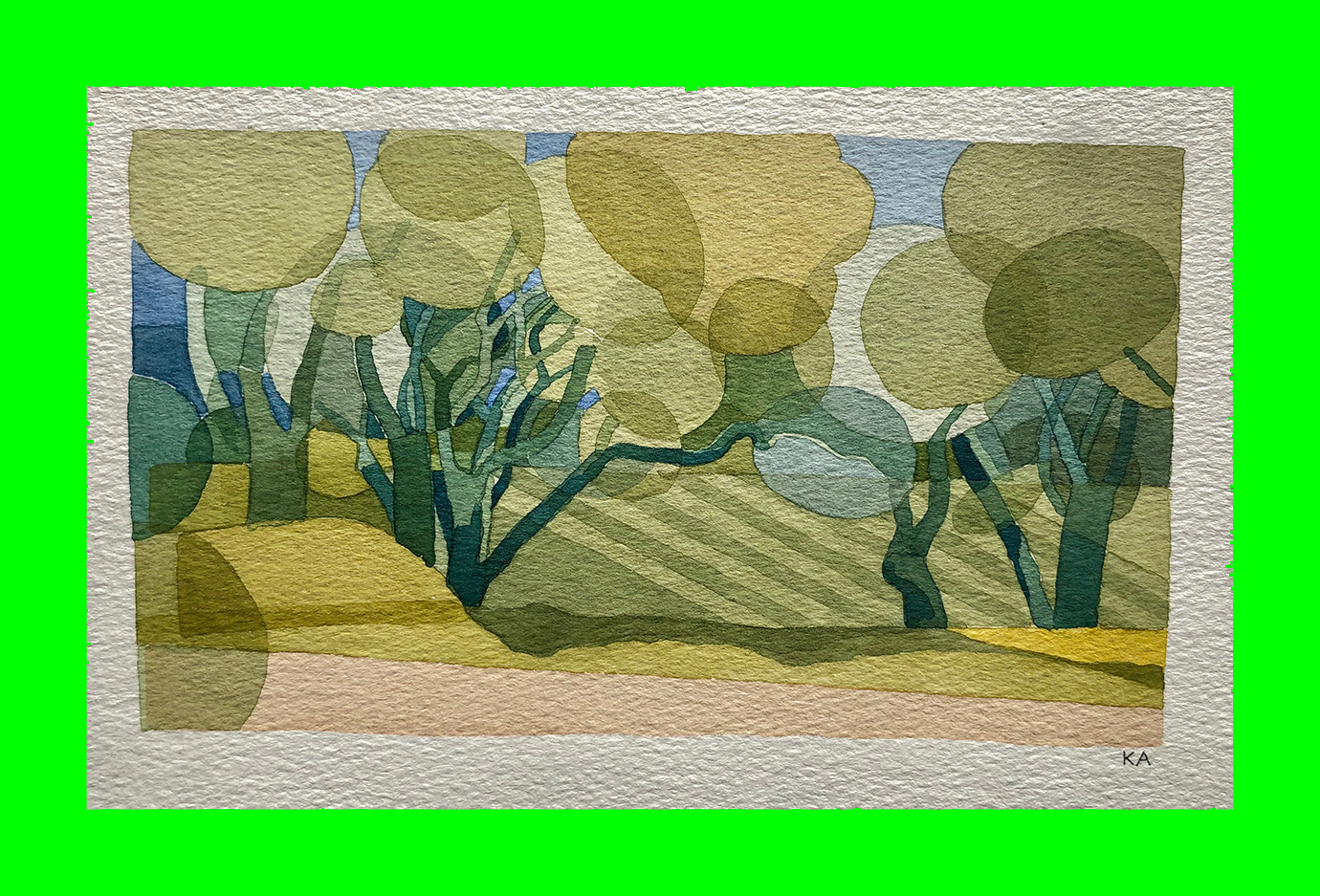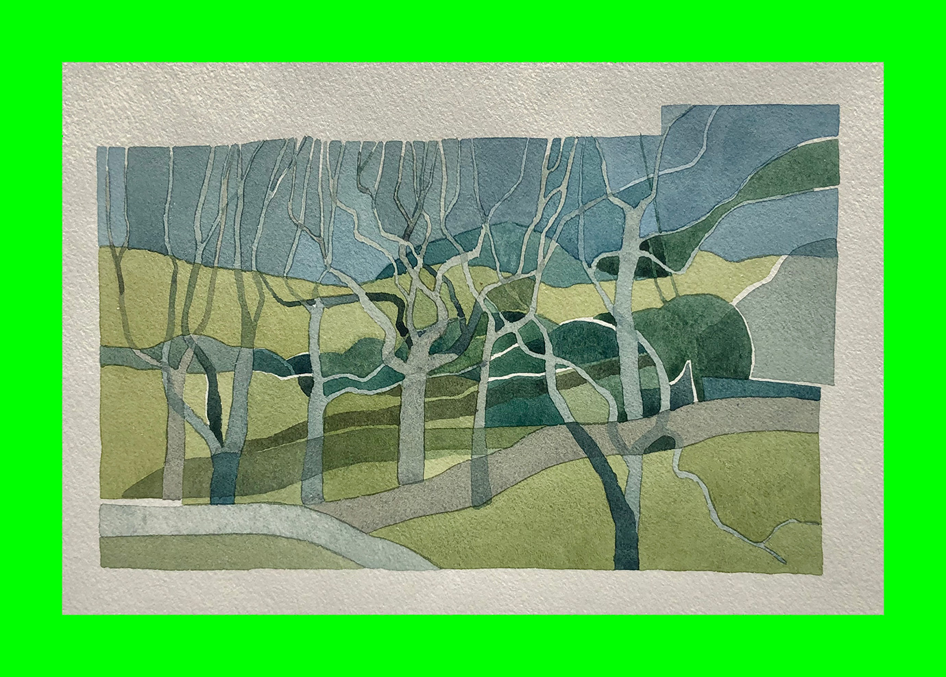 Kit Allsopp, Untitled (Field beyond Trees) (1980s), Watercolour on Paper, 110mm x 185mm (Image Size) (Unique) (£200)