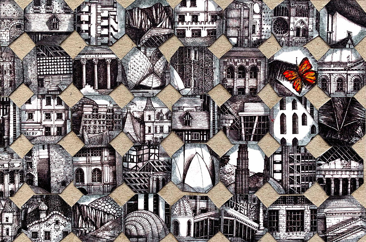 Maryam (Year 8, Green School for Girls), Untitled (Bricks, Mortar, Frames) (Postcard Sent to Velorose from London, 2020) Pen and Paint and Collage (Unique) (Not for Sale)