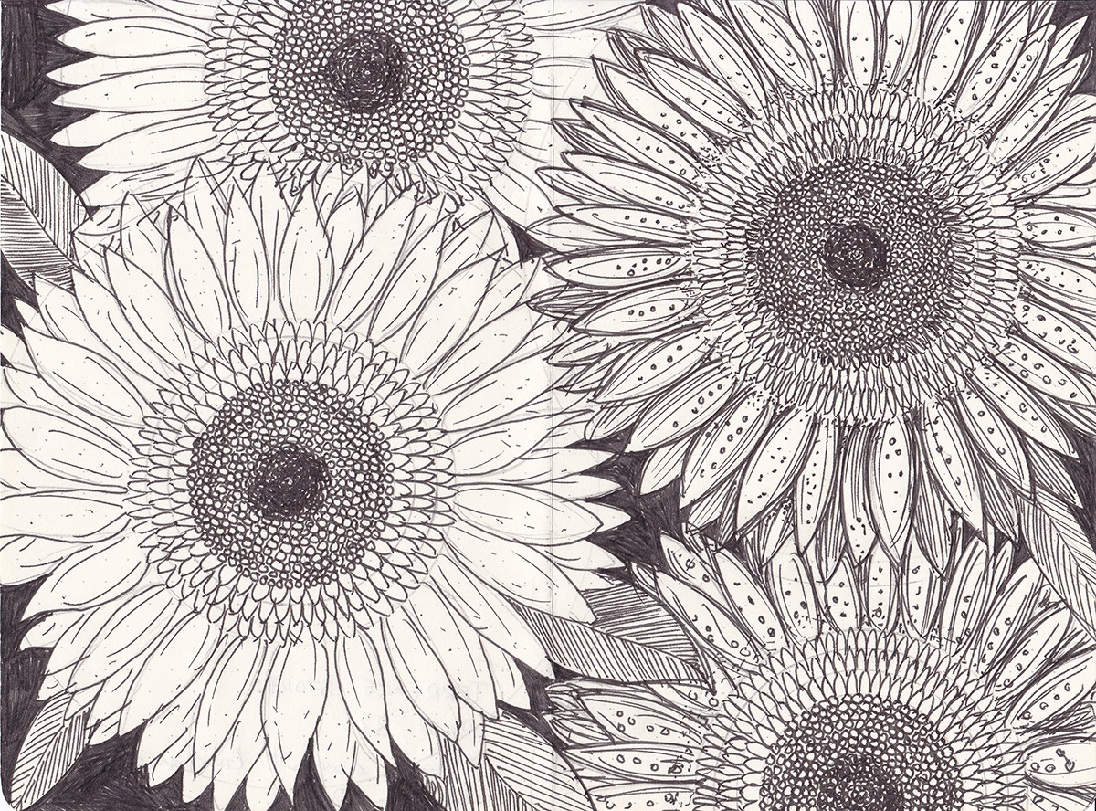 Terrence Stokes (Aged 33), Those Awful Gerberas (Postcard Sent to Velorose from London, 2020), Pencil and Felt Pen on Sketch Book Paper (Unique) (Not for Sale)