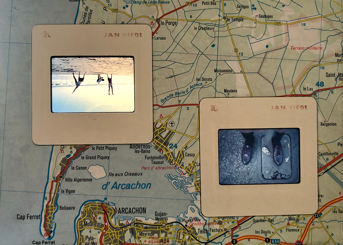 Marlon Studio, World Turned Upside Down (Window to the Past) (Postcard Sent to Velorose from London, 2020), Vintage Diapositives (1991) and Map on Card (Unique) (Not for Sale)